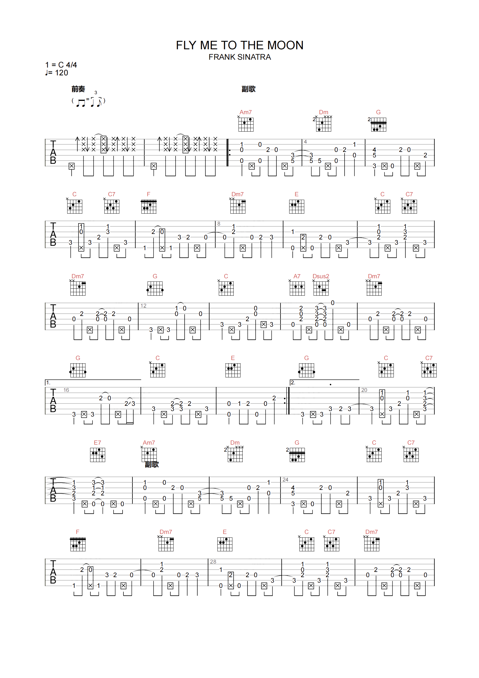 当前位置:琴谱网>吉他独奏>FLY ME TO THE MOON