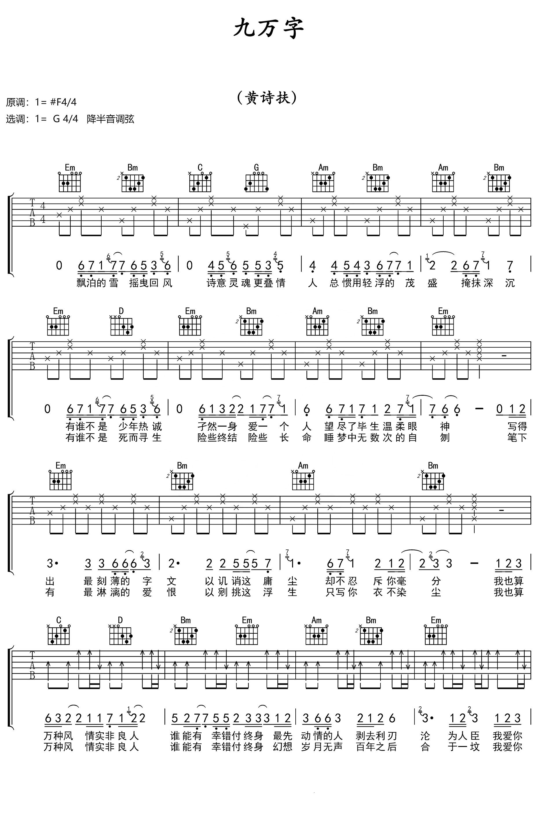九万字吉他谱 - 黄诗扶 - G调吉他弹唱谱