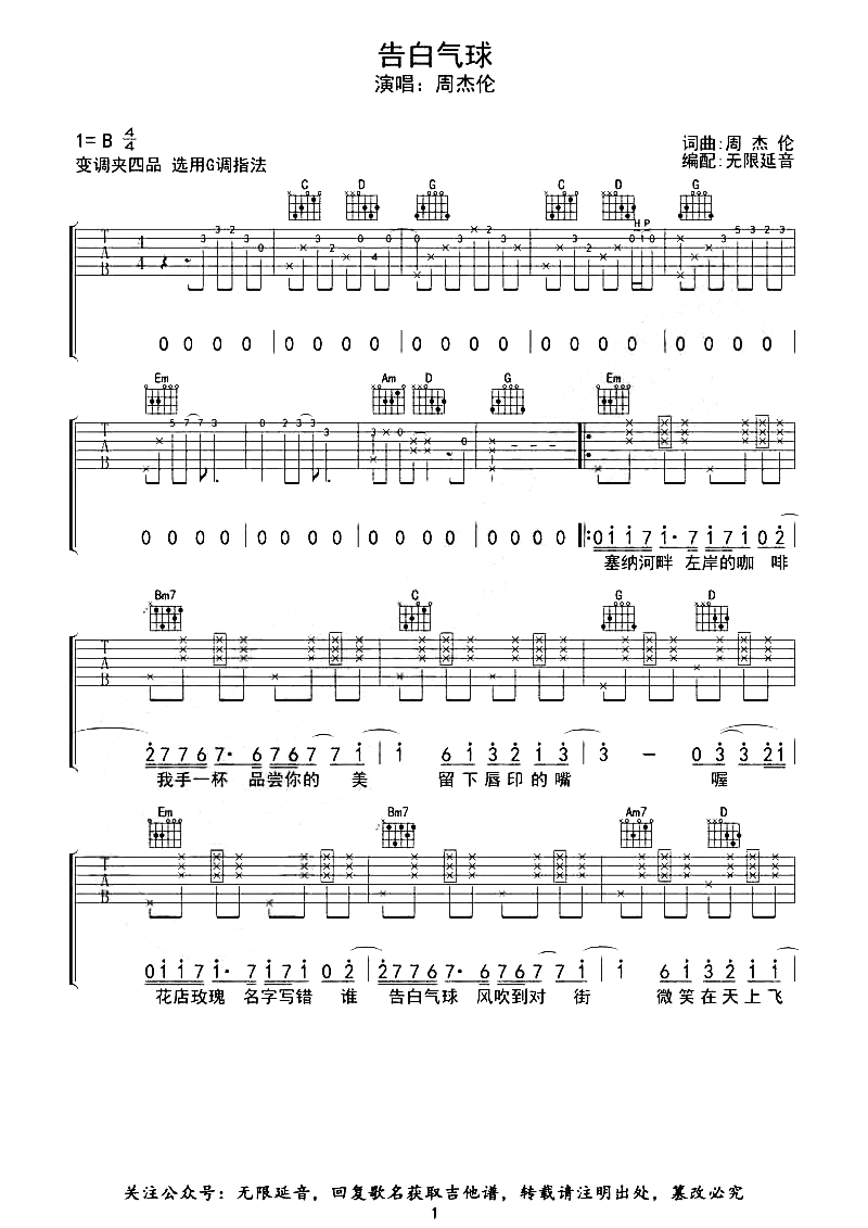 告白气球吉他谱 - 周杰伦 - G调吉他弹唱谱