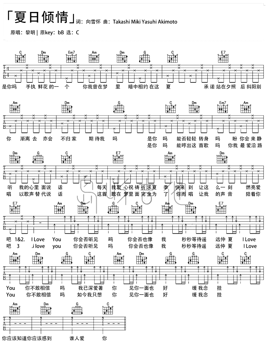 当前位置:琴谱网>吉他弹唱>夏日倾情