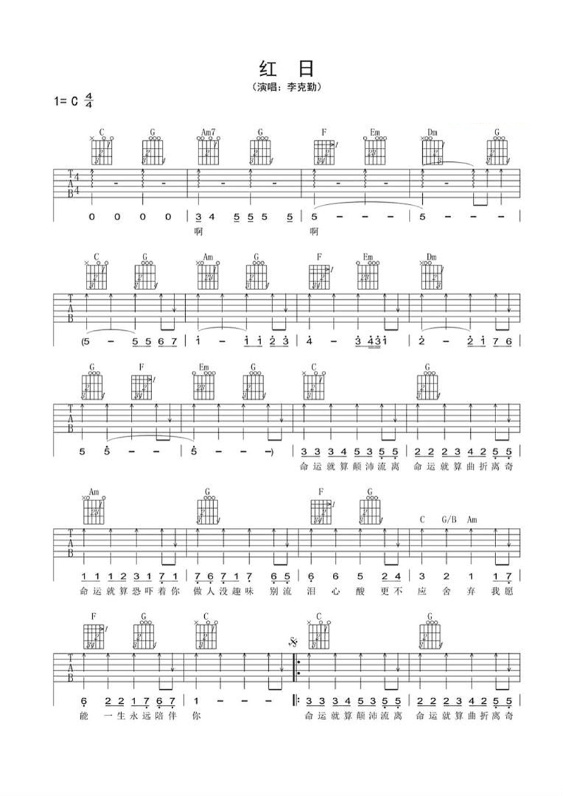 红日吉他谱 - 李克勤 - C调吉他弹唱谱