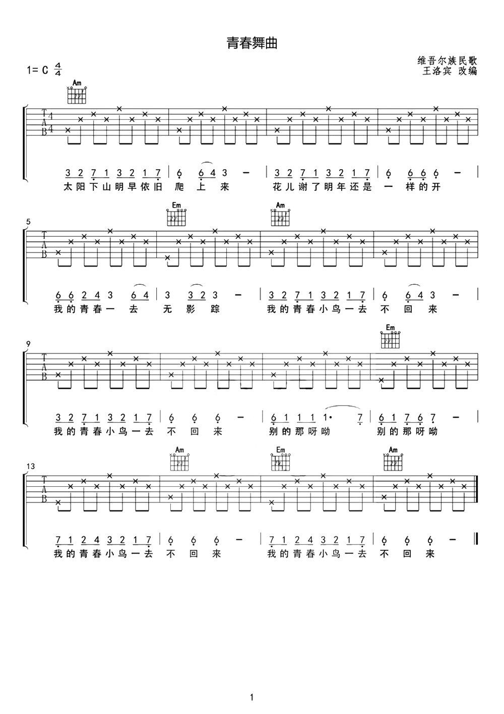 青春舞曲吉他谱 - 王洛宾 - C调吉他弹唱谱
