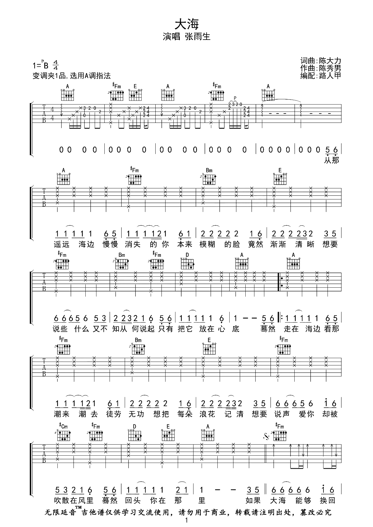 当前位置:琴谱网>吉他弹唱>大海