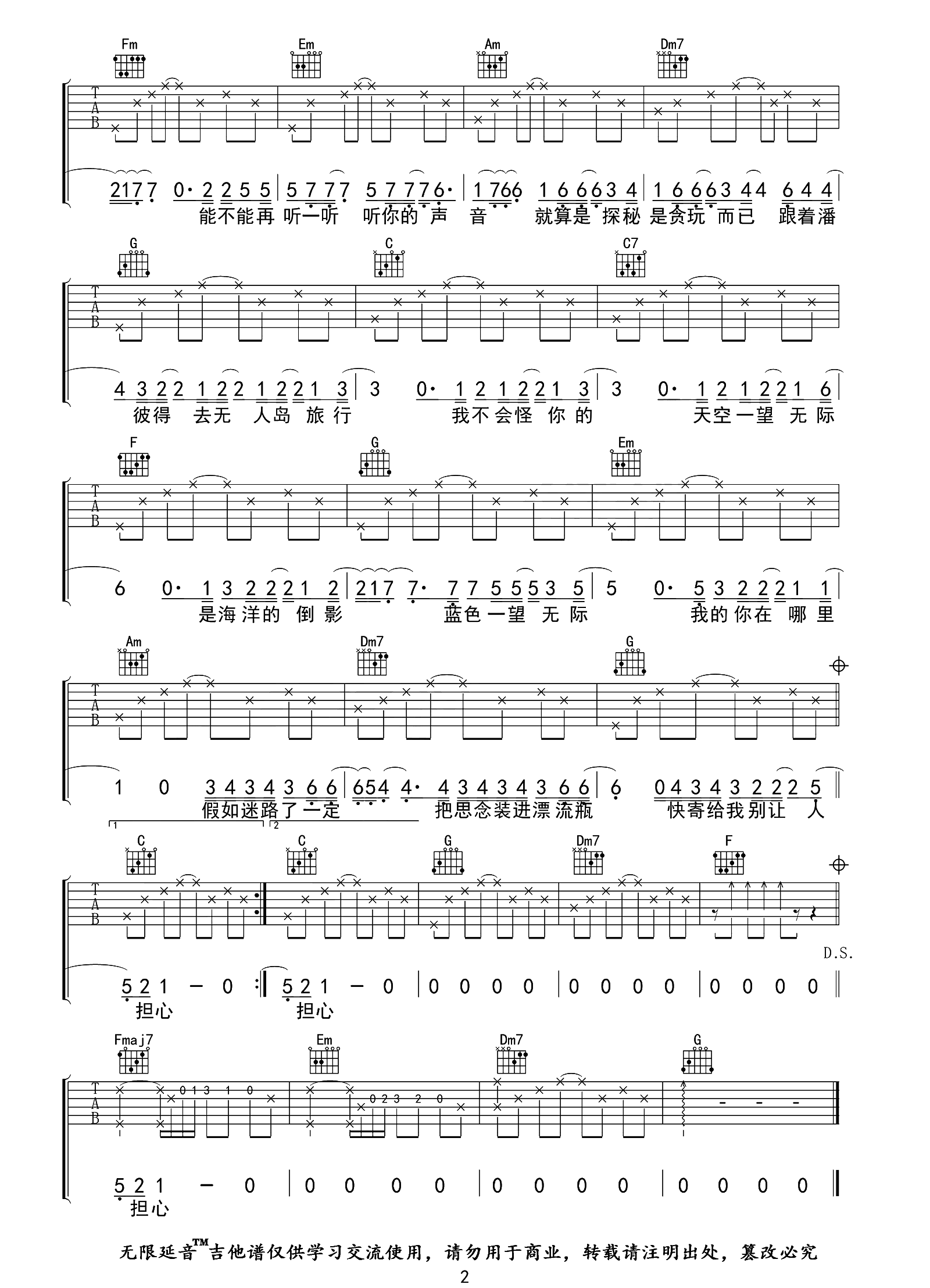 当前位置:琴谱网>吉他弹唱>无人之岛
