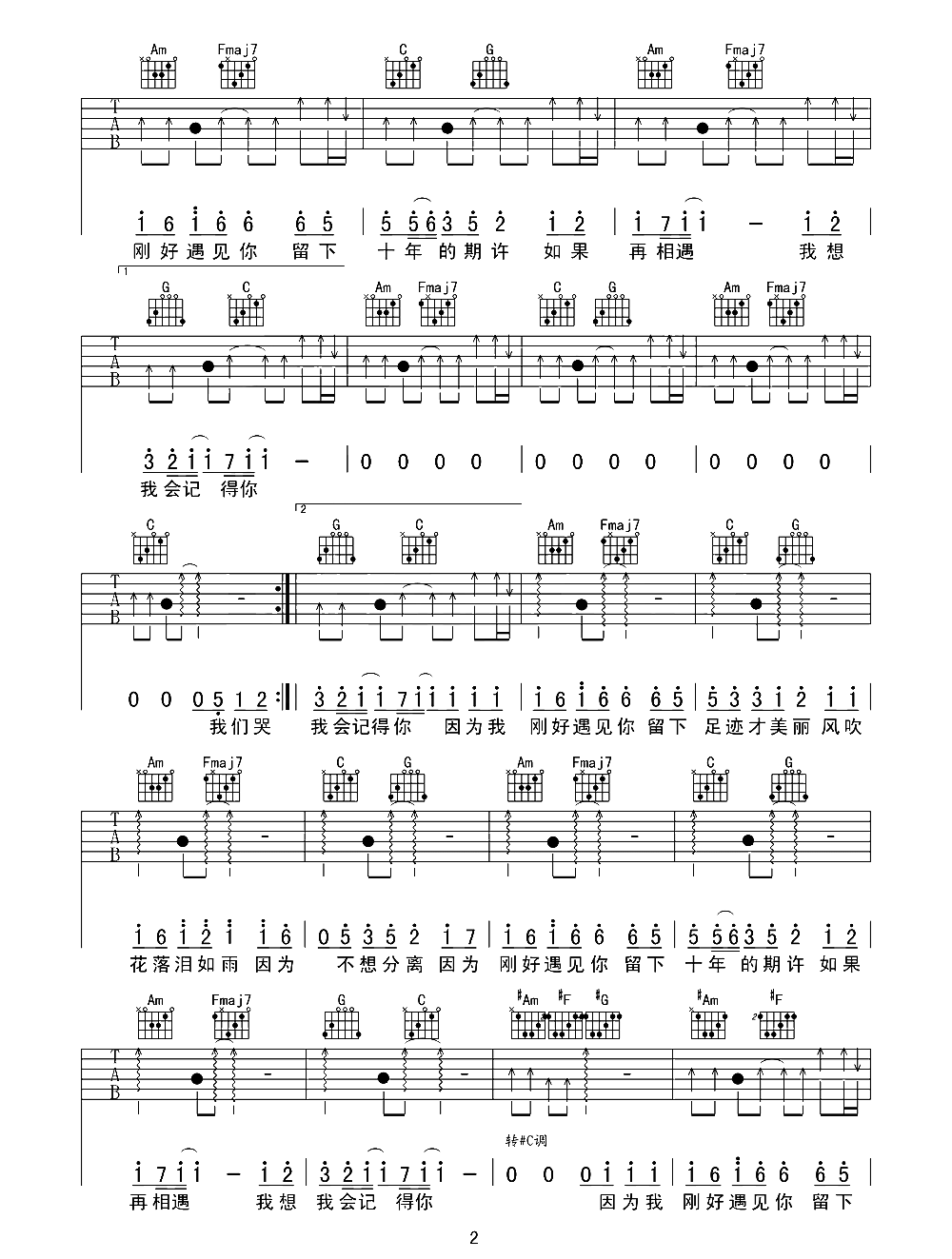 刚好遇见你吉他谱 - 李玉刚 - C调吉他弹唱谱 - 原版