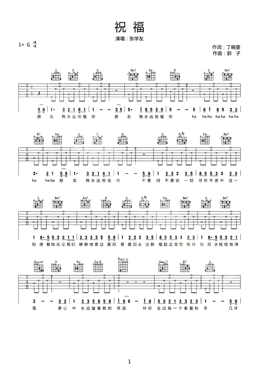 当前位置:琴谱网>吉他弹唱>祝福