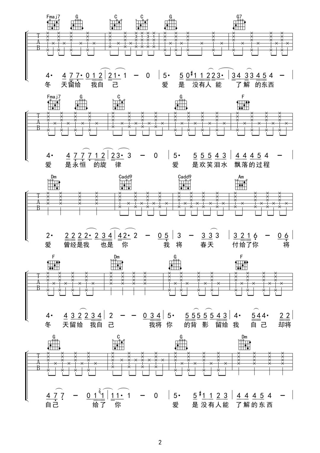 爱的箴言吉他谱 - 罗大佑/邓丽君 - C调吉他弹唱谱