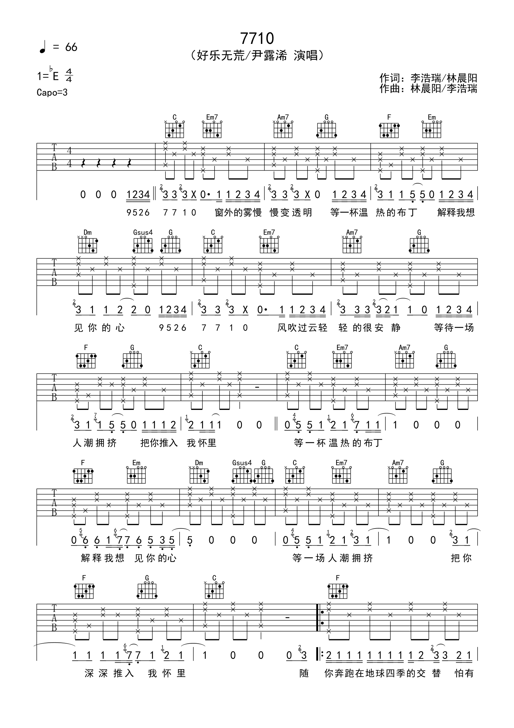7710吉他谱 - 好乐无荒/尹露浠 - G调吉他弹唱谱 - 原版
