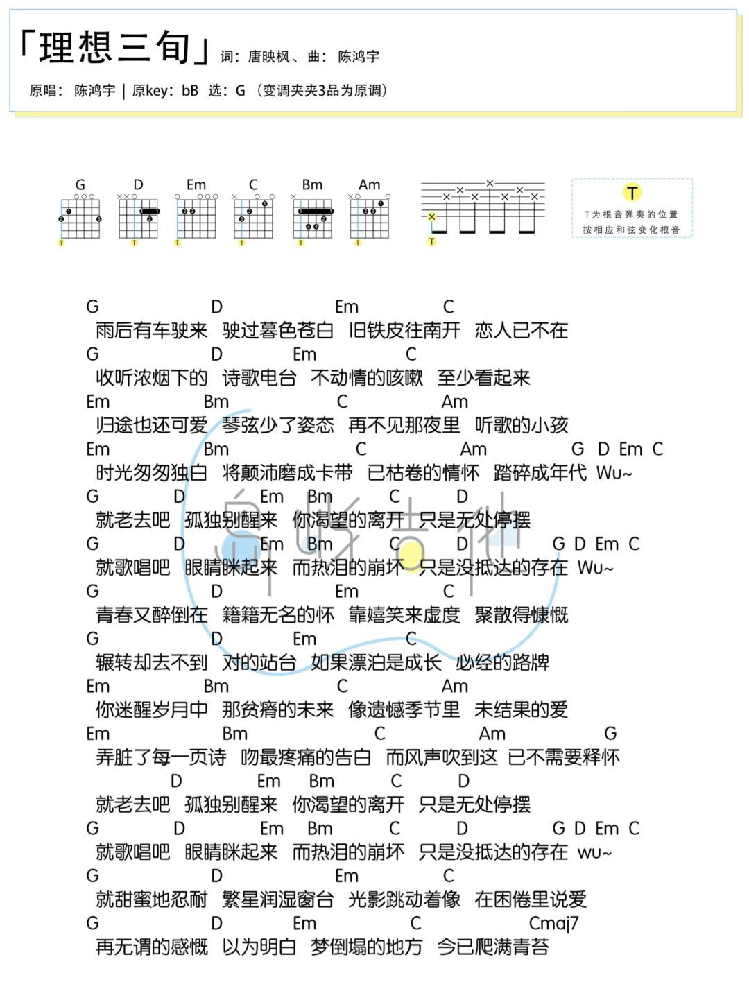 理想三旬吉他谱 - 陈鸿宇 - G调吉他弹唱谱