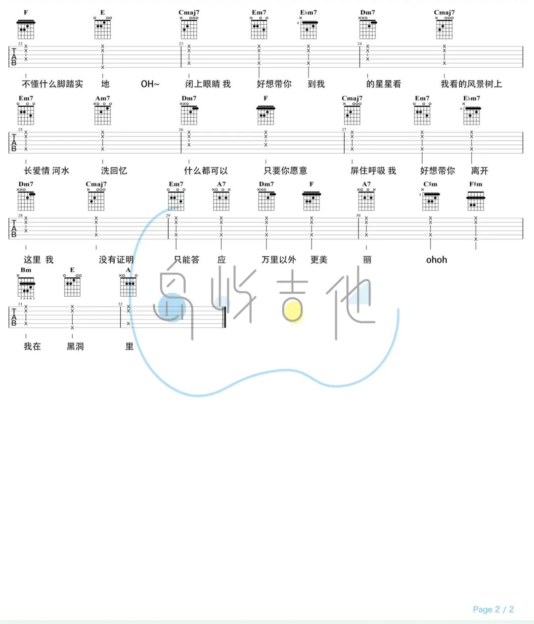 当前位置:琴谱网>吉他弹唱>黑洞里