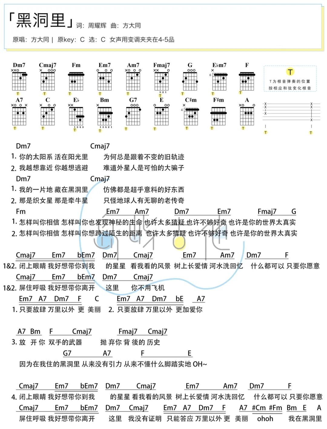 黑洞里吉他谱 - 方大同 - C调吉他弹唱谱