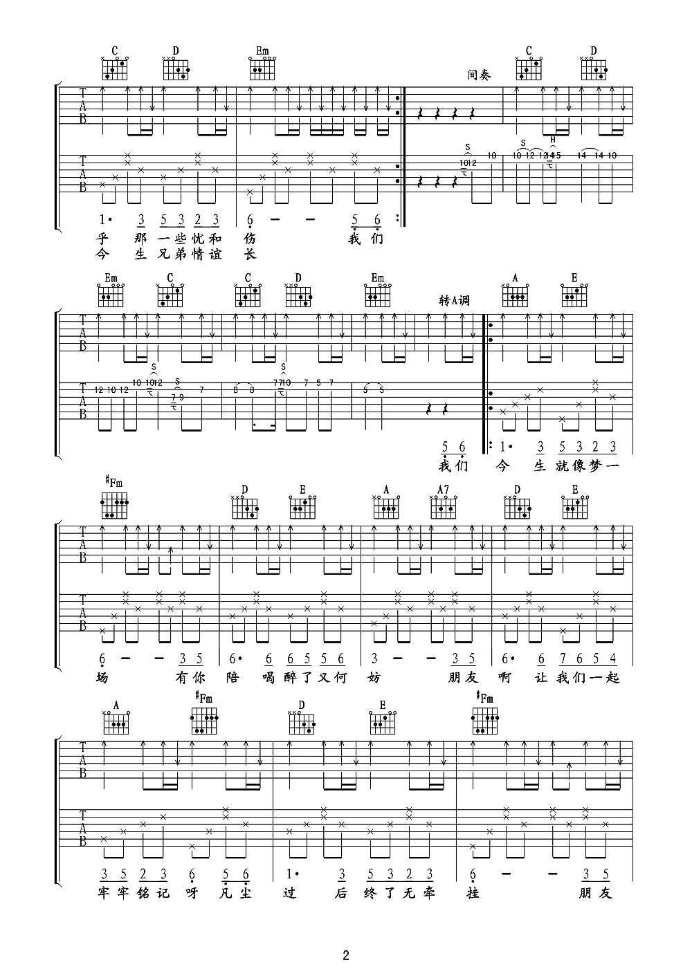 吉他弹唱G调来源:川子_G调超原版_弹唱六线谱_双吉他588 浏览2024-02-11 12:07发布图谱共3页