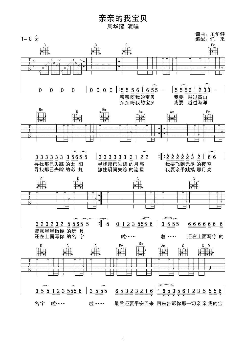 亲亲我的宝贝吉他谱 - 周华健 - G调吉他弹唱谱 - 原版