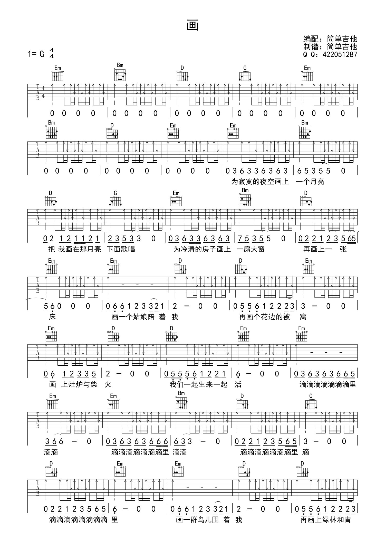 当前位置:琴谱网>吉他弹唱>画
