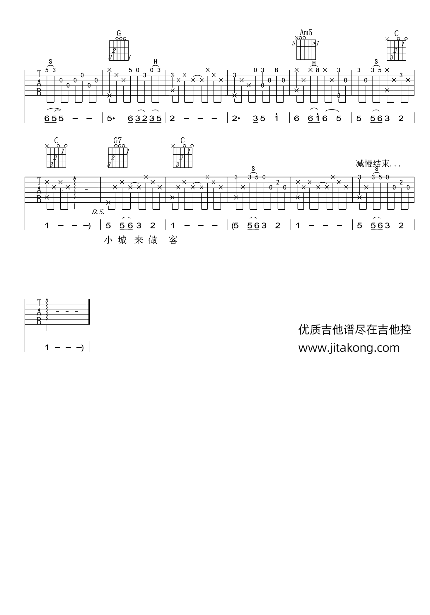 当前位置:琴谱网>吉他弹唱>小城故事