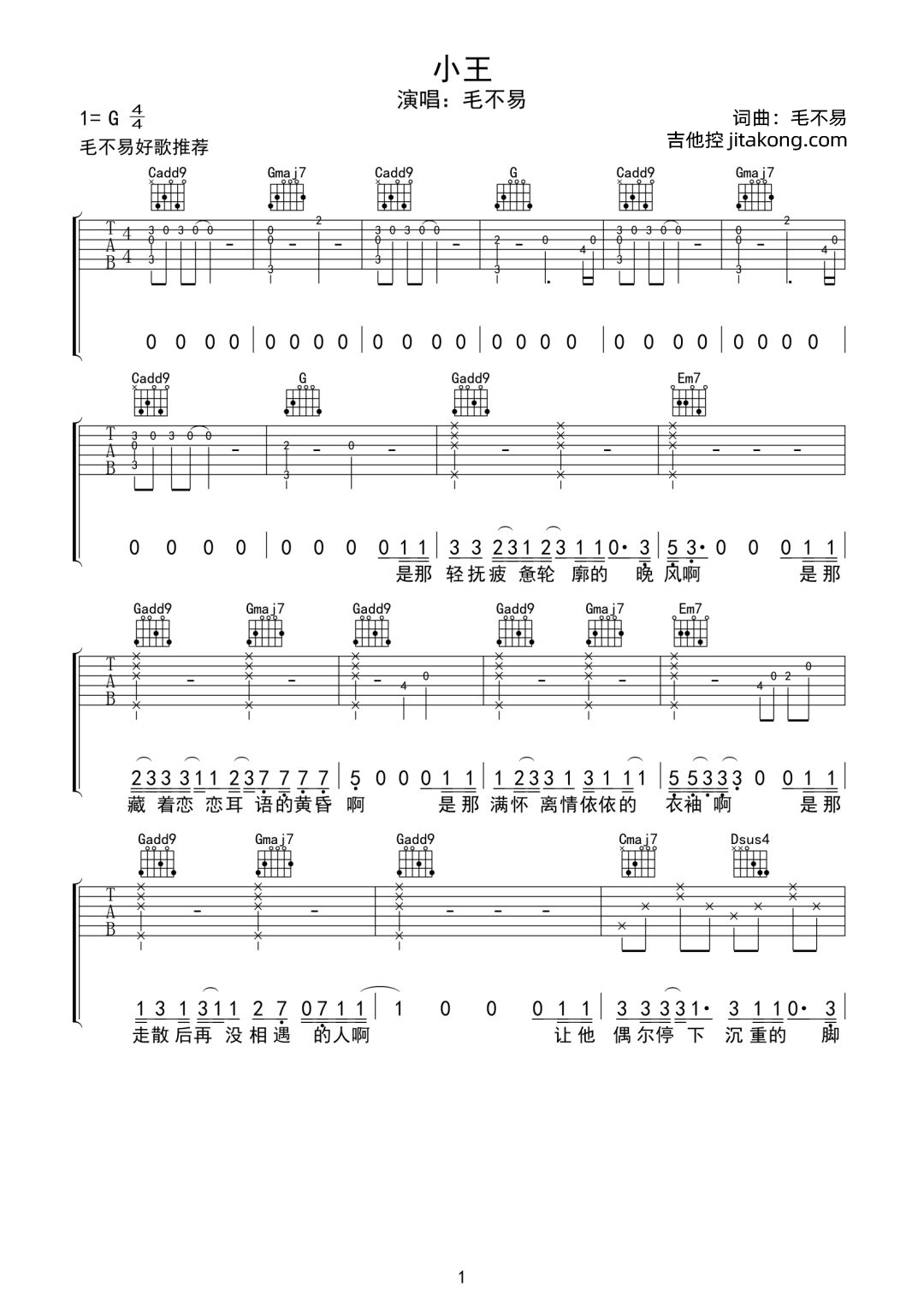 小王吉他谱 - 毛不易 - G调吉他弹唱谱 - 原版