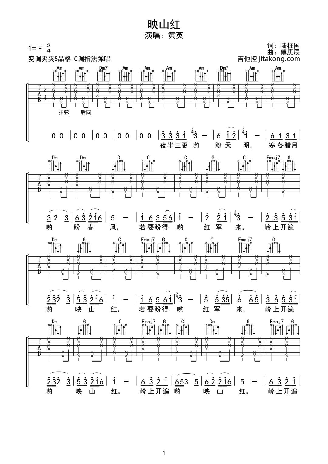 映山红吉他谱 - 黄英 - C调吉他弹唱谱