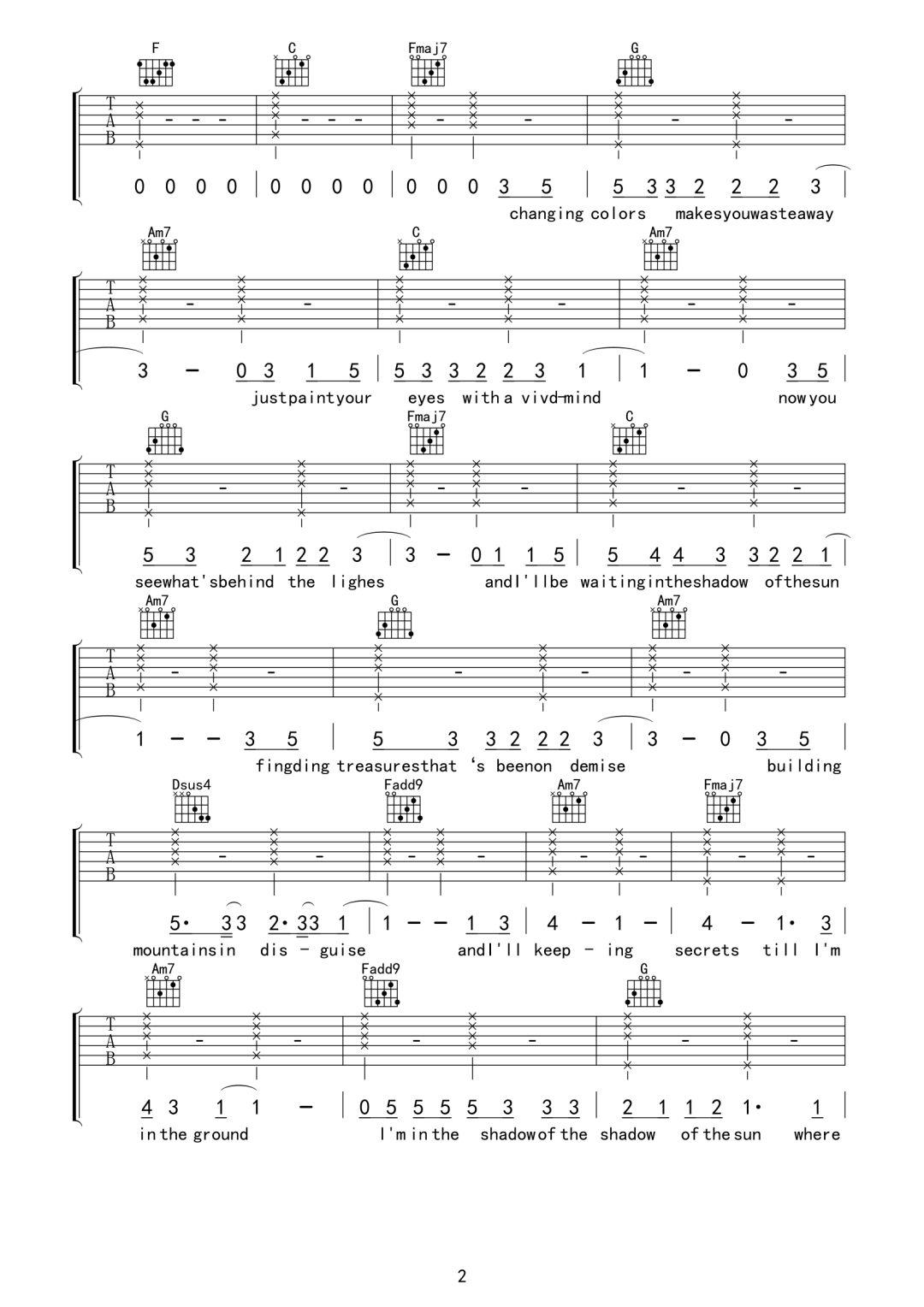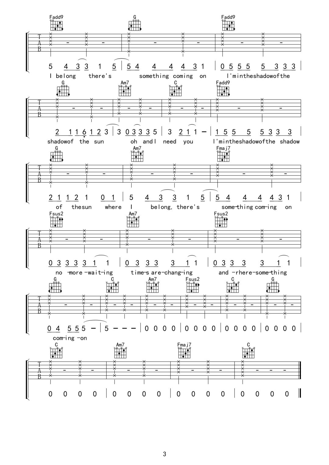 当前位置:琴谱网>吉他弹唱>Shadow of the sun