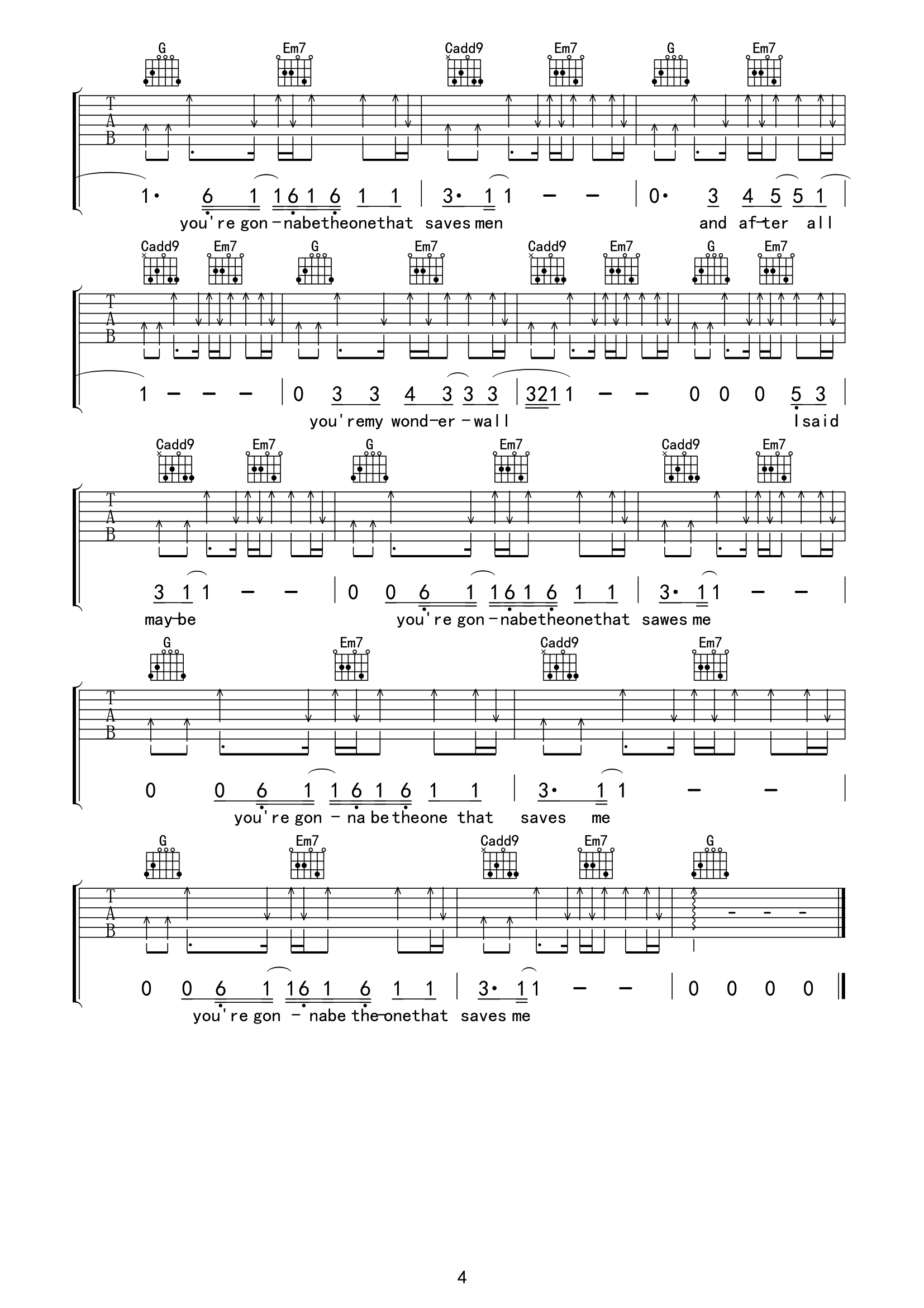 Wonderwall吉他谱 - Oasis - G调吉他弹唱谱