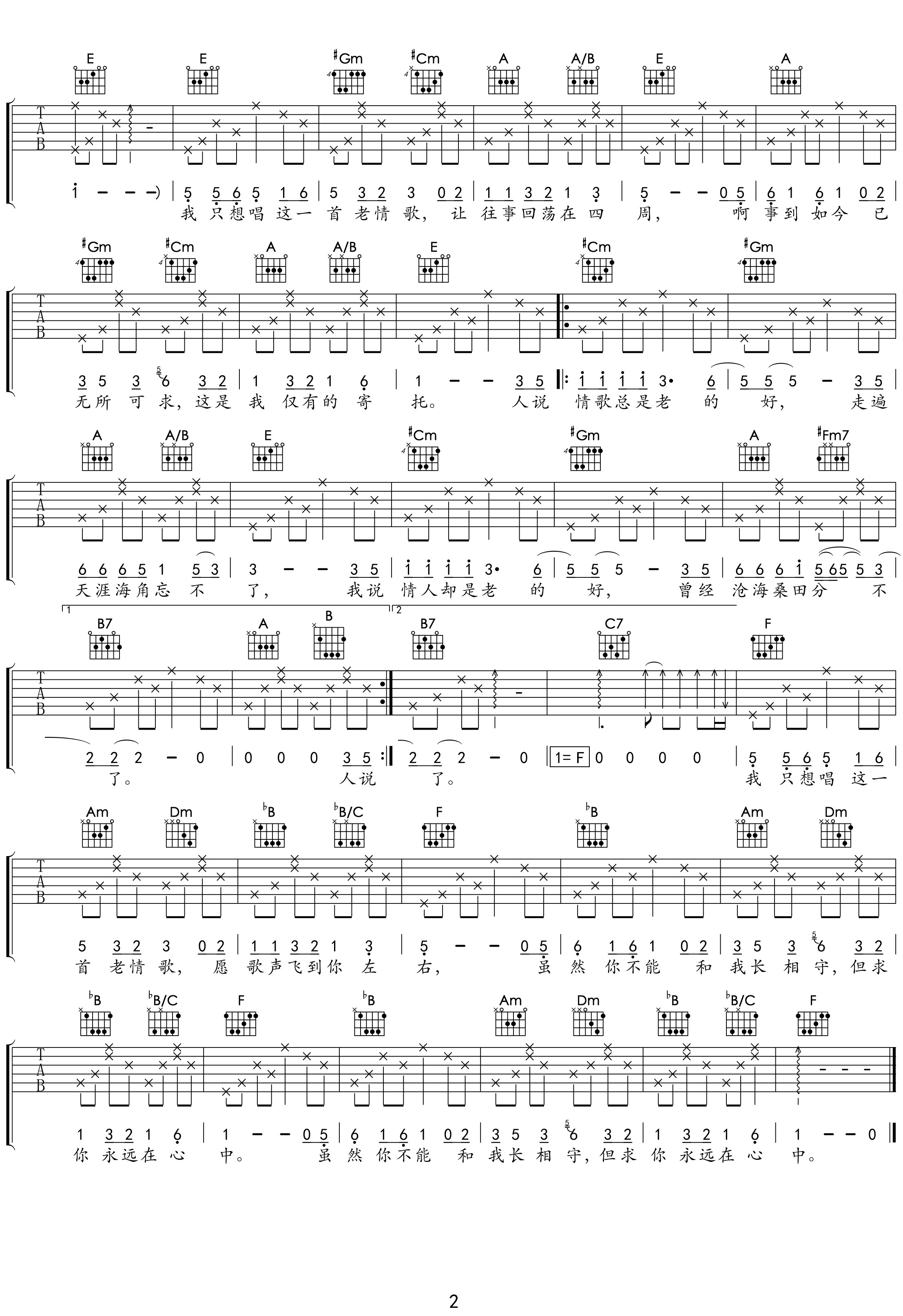 老情歌吉他谱 - 吕方 - F调吉他弹唱谱 - 原版