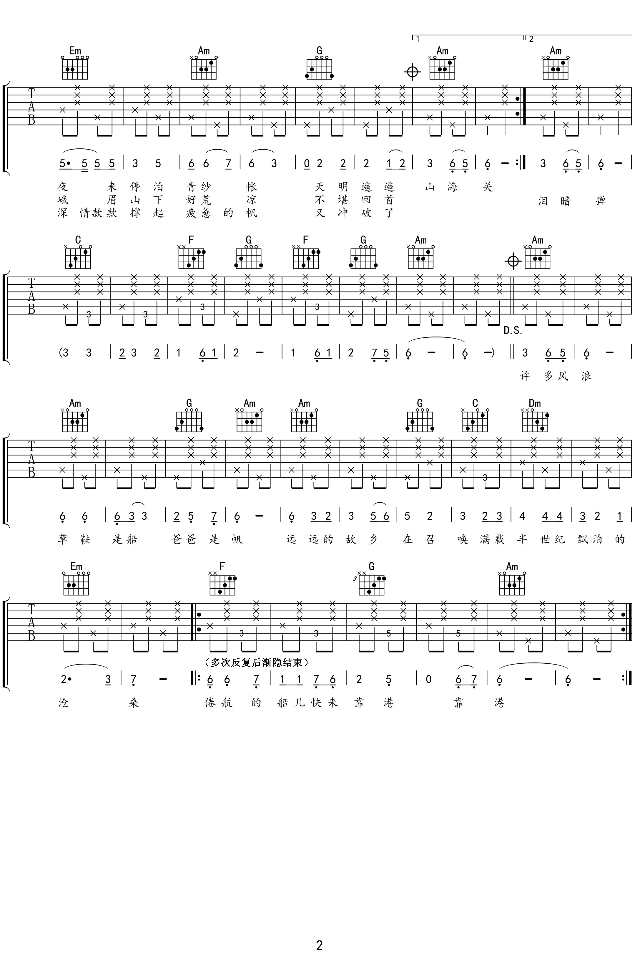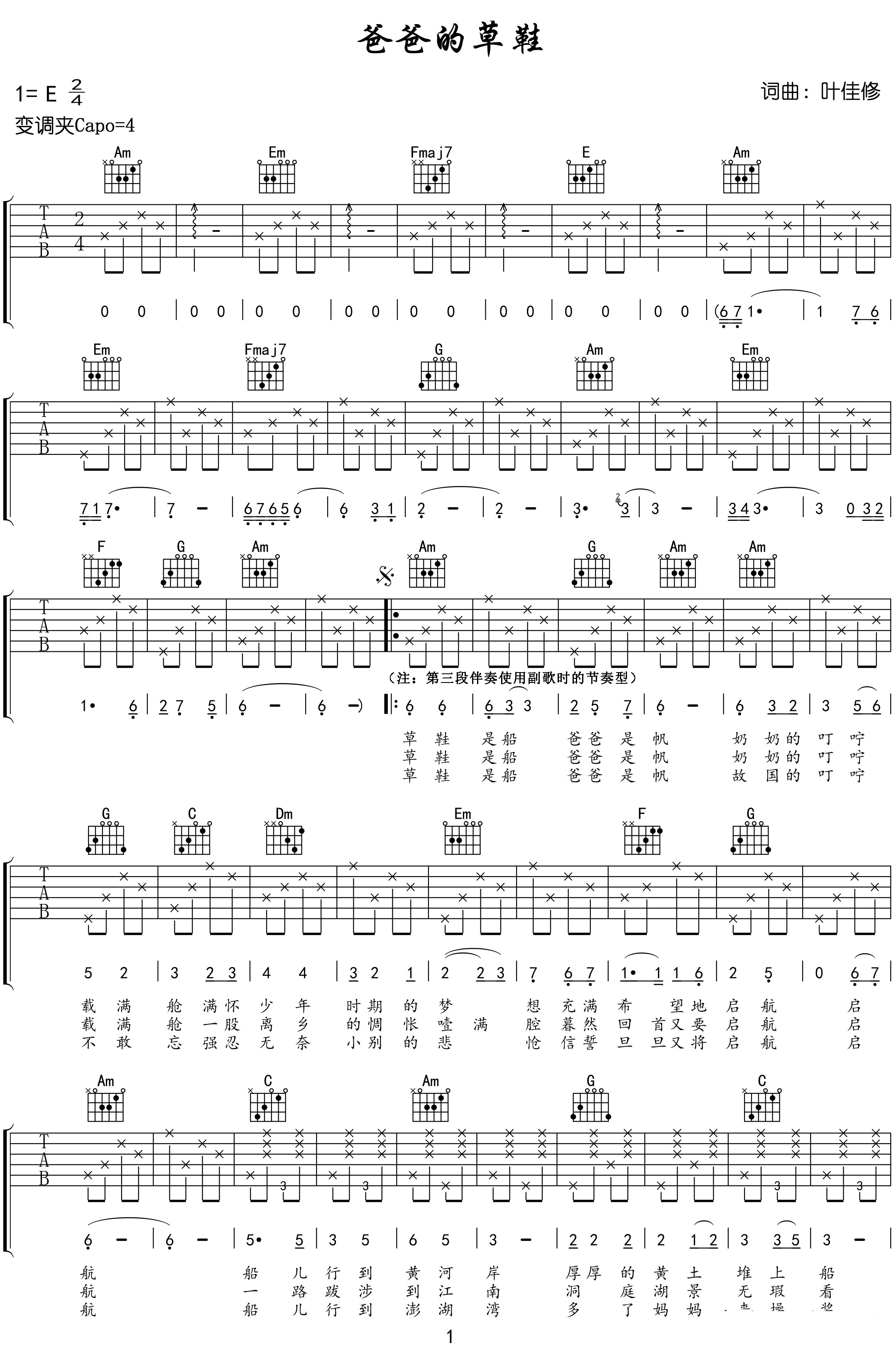 当前位置:琴谱网>吉他弹唱>爸爸的草鞋