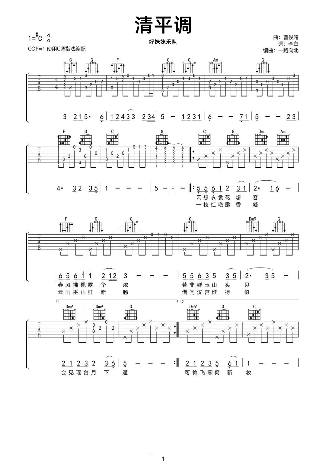 清平调吉他谱 - 好妹妹乐队 - 吉他弹唱谱 - 原版