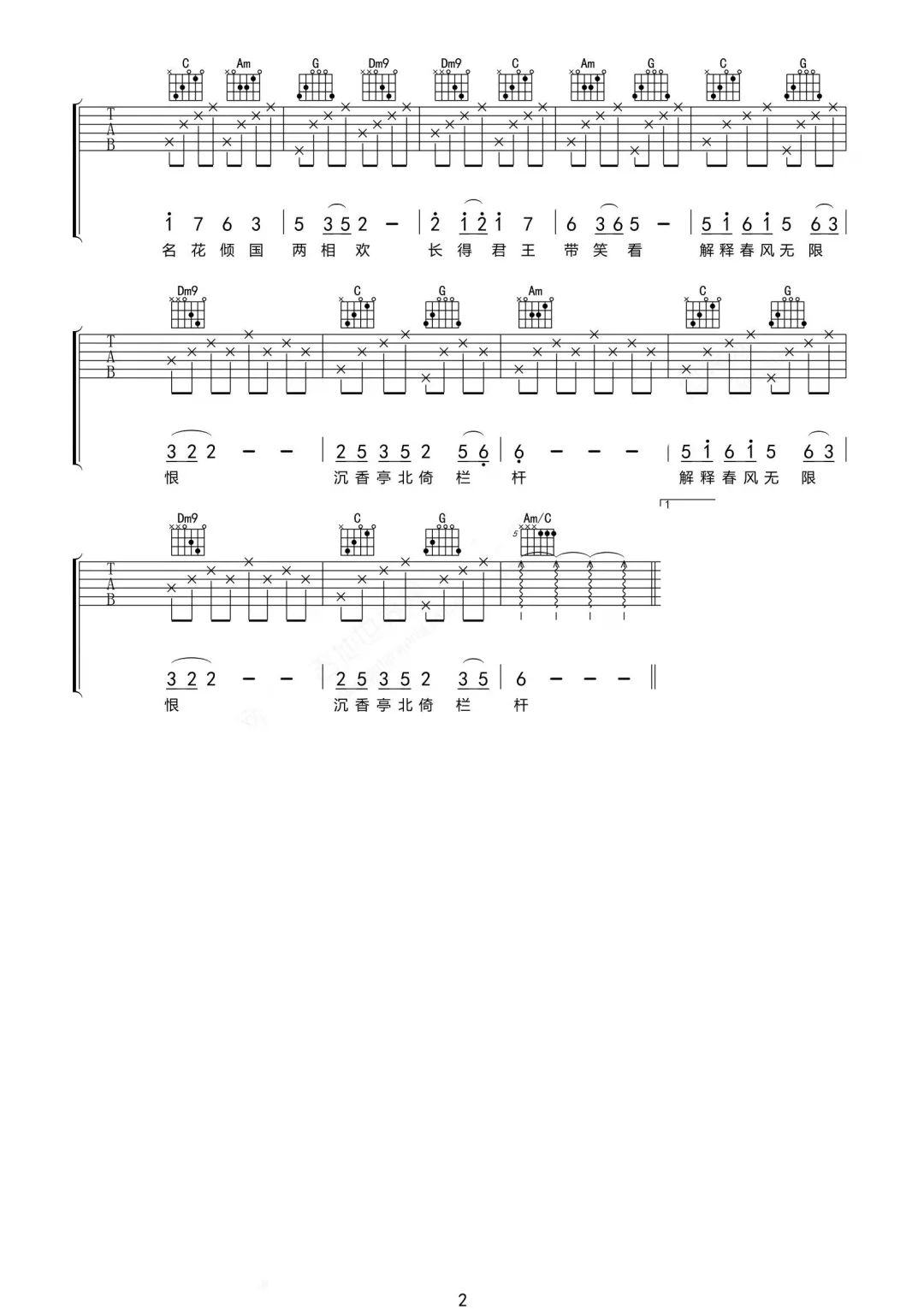 当前位置:琴谱网>吉他弹唱>清平调