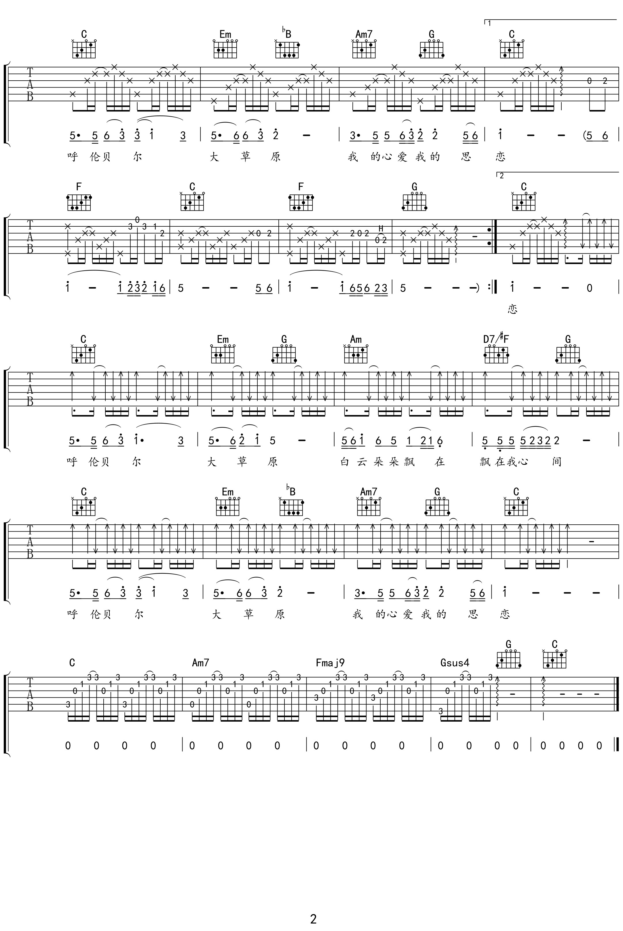 呼伦贝尔大草原吉他谱 - 齐峰 - C调吉他弹唱谱 - 原版
