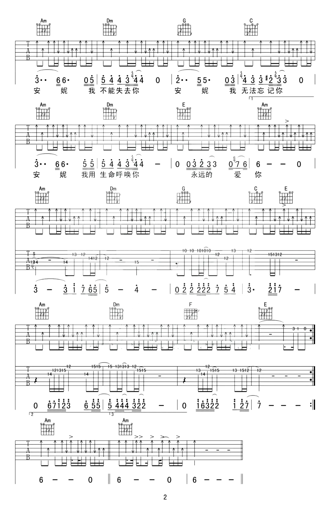 曲谱介绍: 安妮吉他谱,王杰演唱,舒缓的旋律深刻而感伤,王杰将心中关于“安妮”的真实故事融入到歌中,真挚的表现出了那份铭刻于心的感情,那种无法失去和无奈的情绪让人共鸣。 《安妮》吉他弹唱谱,选用C调指法编配,本谱含完整前奏,标准调音可不用变调夹,也可根据自己嗓音调整,共2张高清图片谱,难度5级适中。