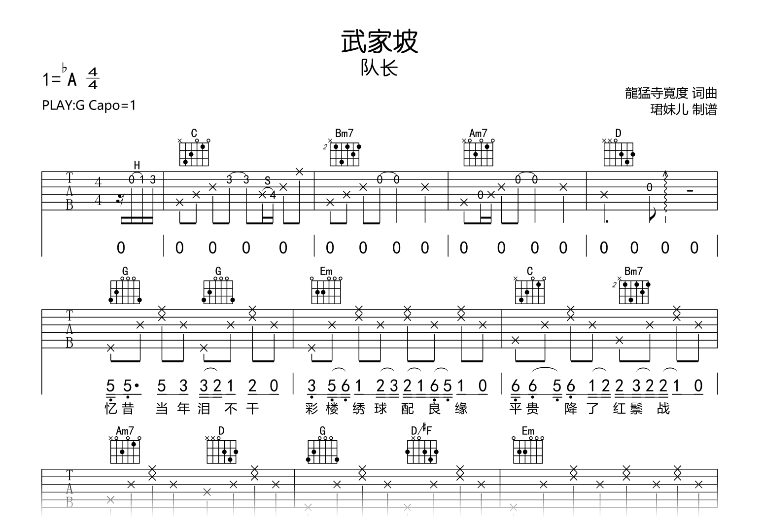 武家坡吉他谱 - 队长 - G调吉他弹唱谱