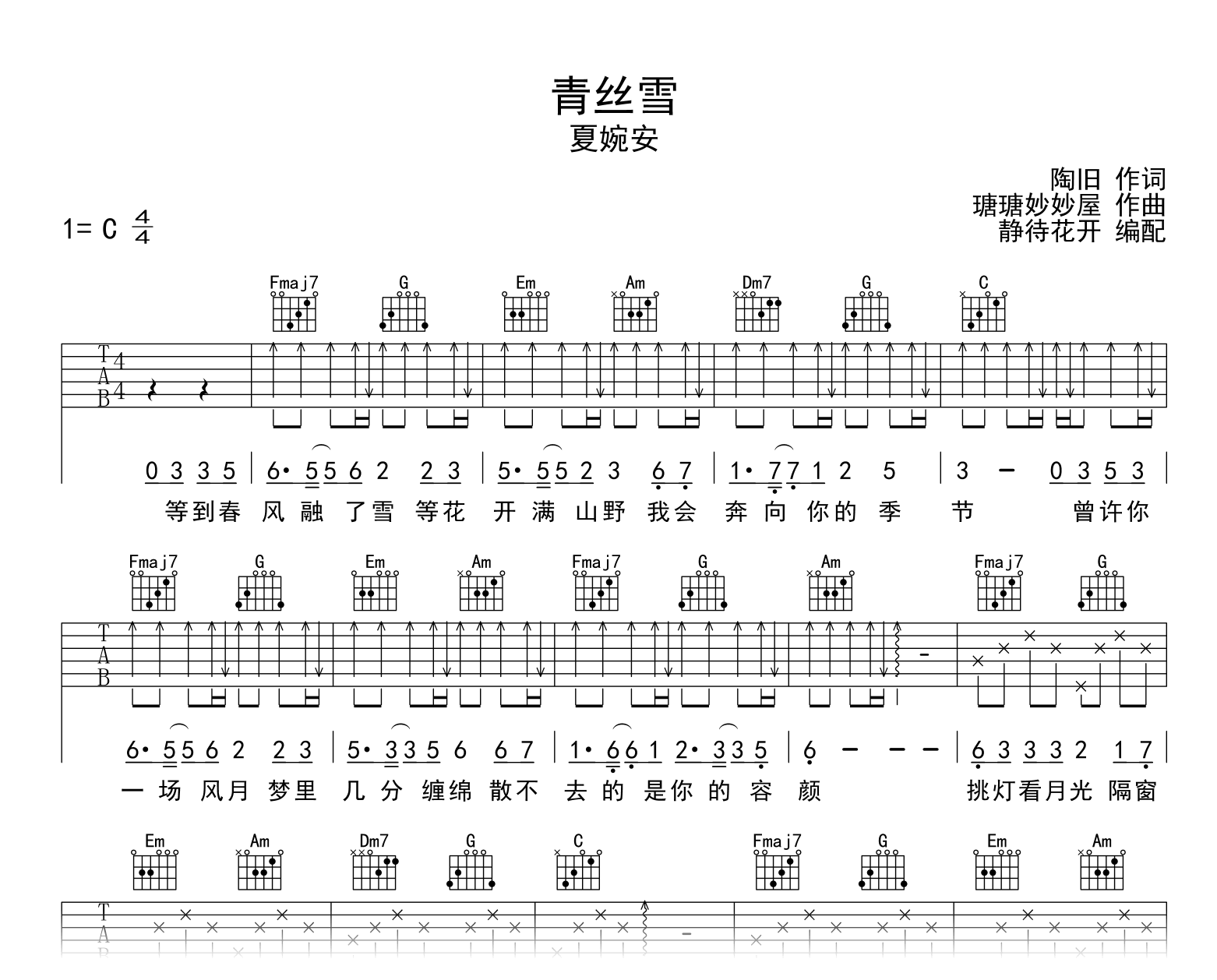 青丝雪吉他谱 - 夏婉安 - C调吉他弹唱谱