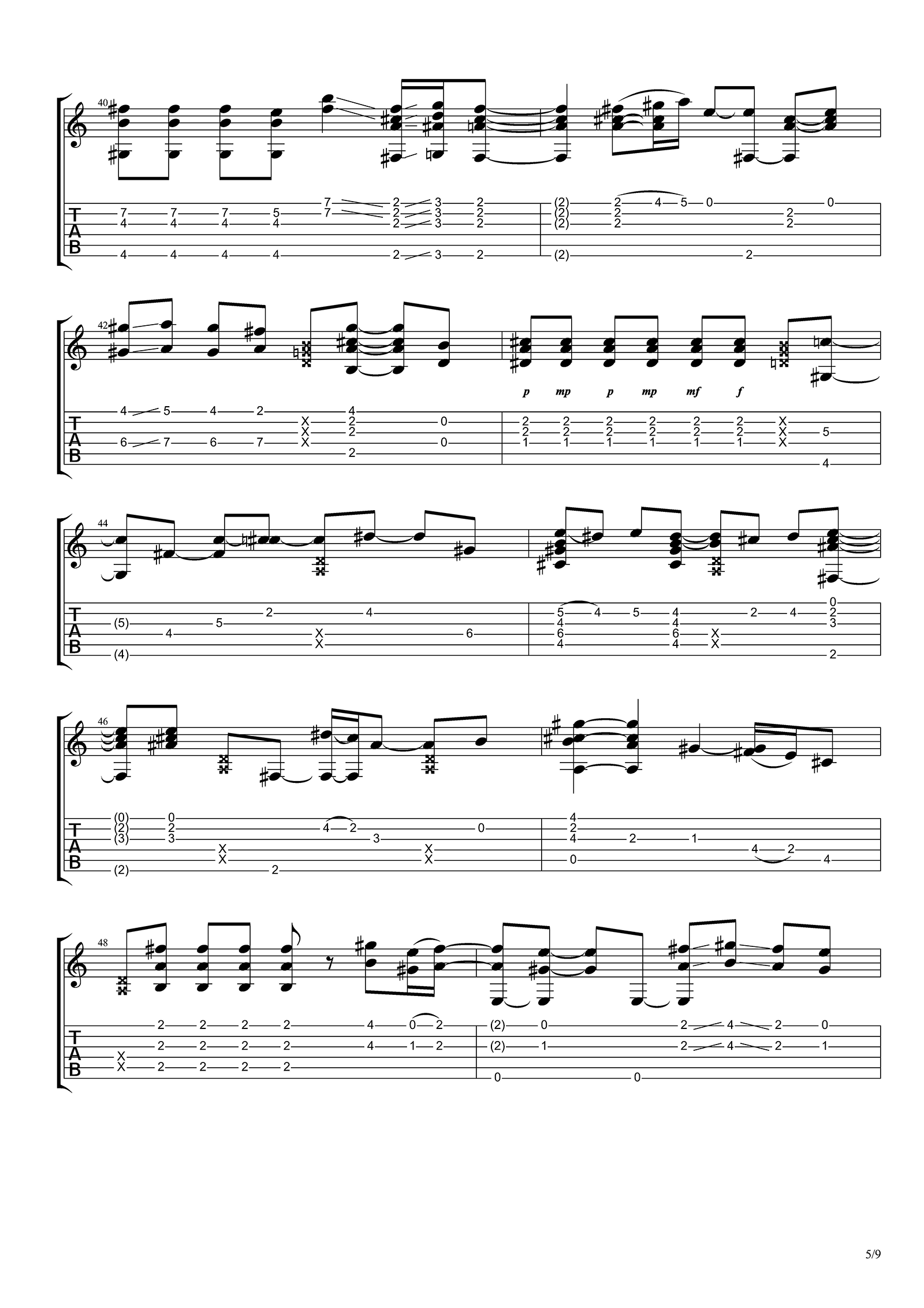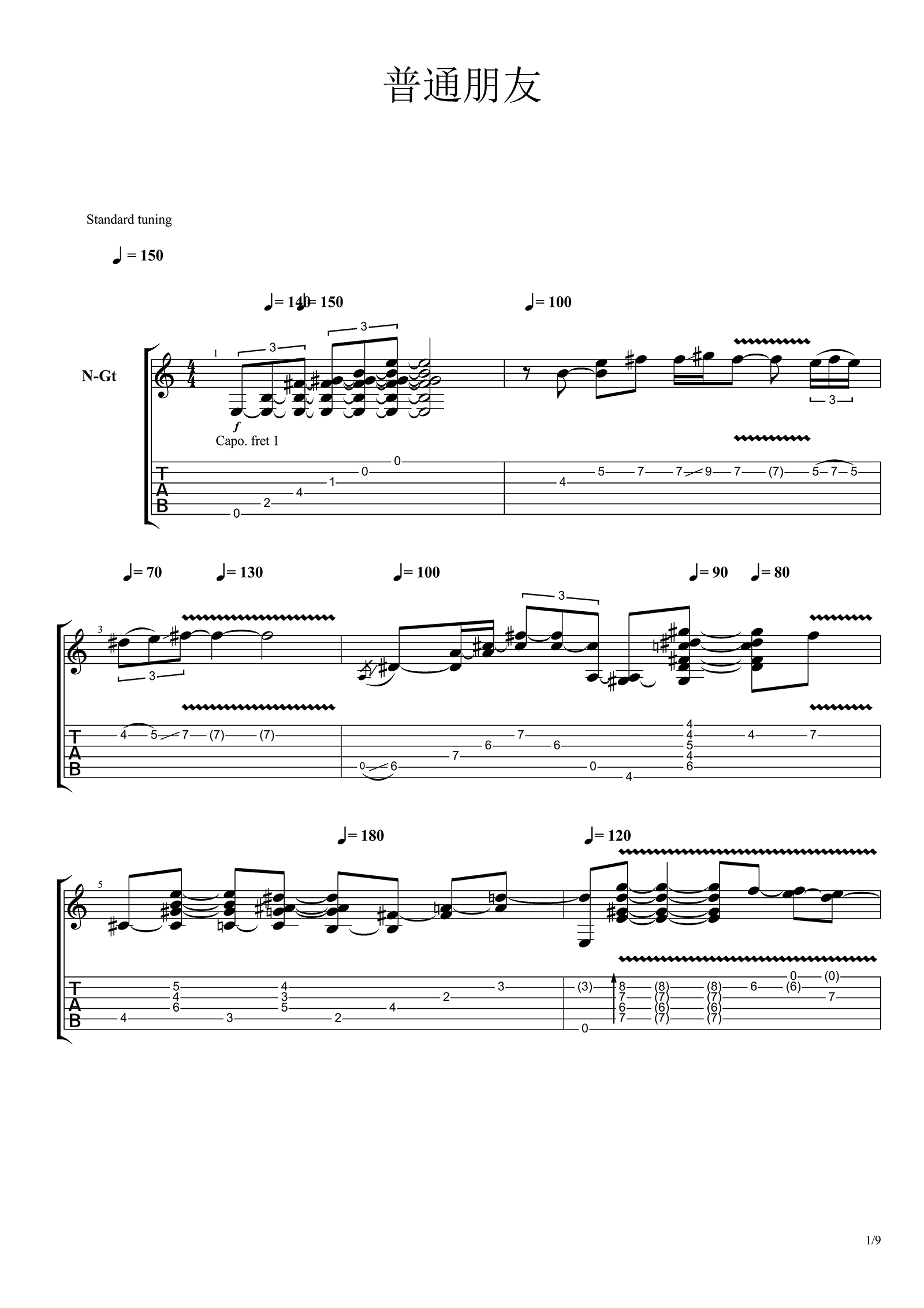 曲谱介绍: 普通朋友指弹吉他谱,改编自陶喆《普通朋友》的吉他独奏曲目,R&B的曲风带着一种舒适的华丽感,线性的高低走位,更加让我们能够感受到这首曲子的独特韵味。 本谱共有9张高清图片谱例,弹奏速度控制在150拍每分钟,节奏4/4拍,整体难度5级始终,各位琴友多加练习,才可尽快上手。 指弹谱详情