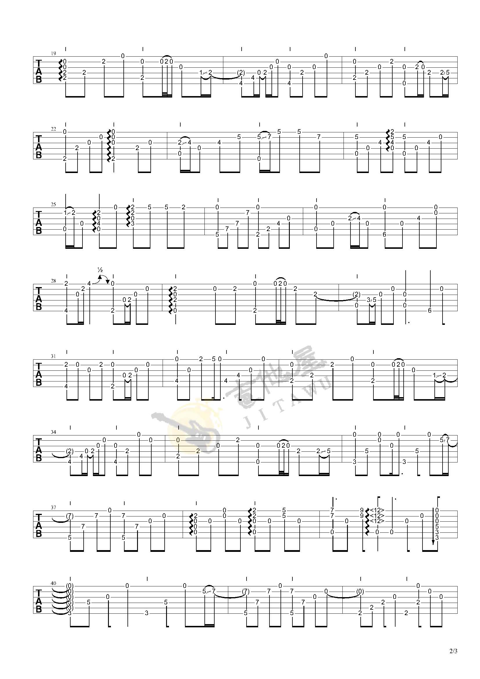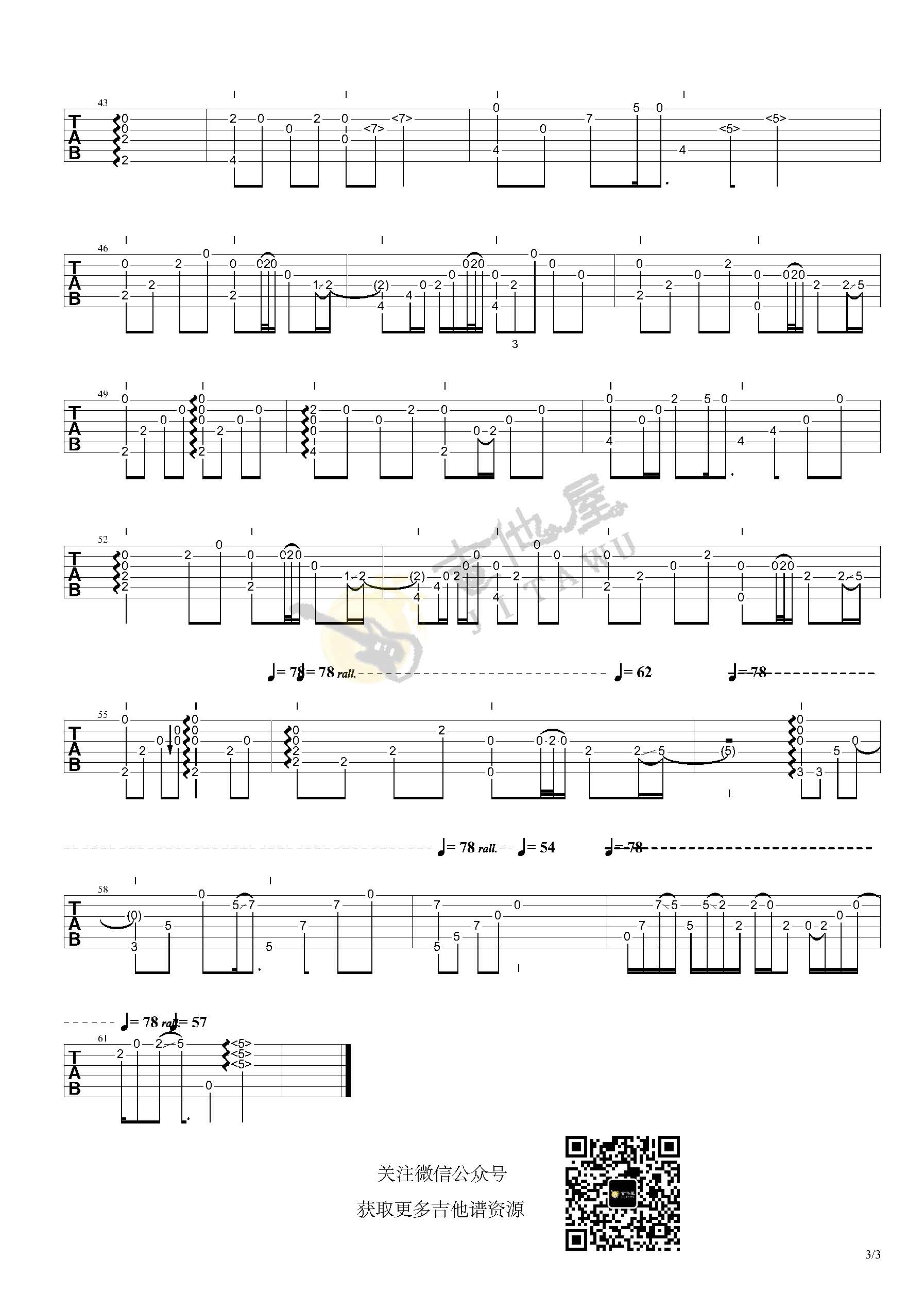 曲谱介绍: 吉他谱介绍:茉莉花指弹吉他谱,曹思义的一首指弹吉他曲目,这首曲子采用的是特殊调弦,4/4拍的节奏,练习之前6根琴弦需要调到对应的音,曲谱上有标注,注意调音过程中不要断弦。小技巧:琴弦振动过程中不要调音,用手制音之后再旋转弦钮,会大大降低断弦的几率。演奏时可不夹变调夹,曲谱由琴谱网更新上传,共3张高清图片指弹吉他谱例,来源于@走音编配出品。《茉莉花》本是一首民间歌谣,这里走音老师改编成一首指弹曲,充满中国风的味道,韵味十足,十分好听,但是吉他谱有一定难度哦。特殊调弦的话,需要将1256弦调至D、A、G、C即可。