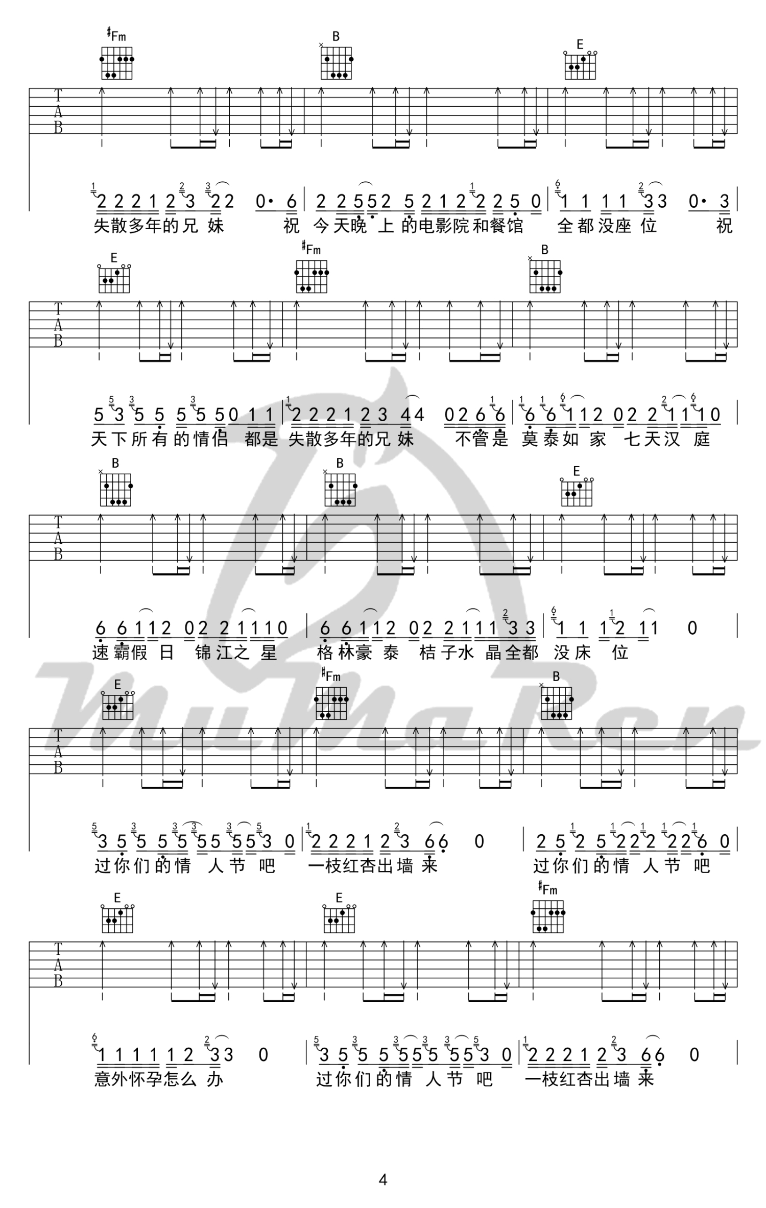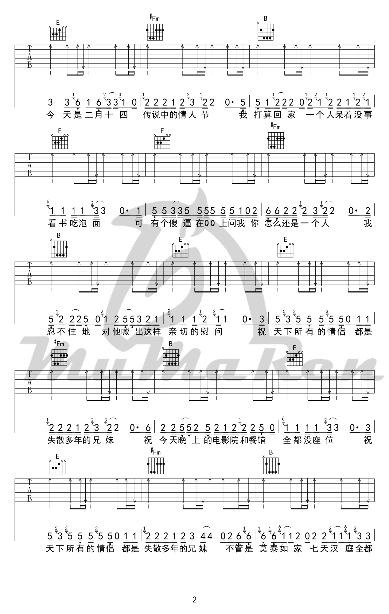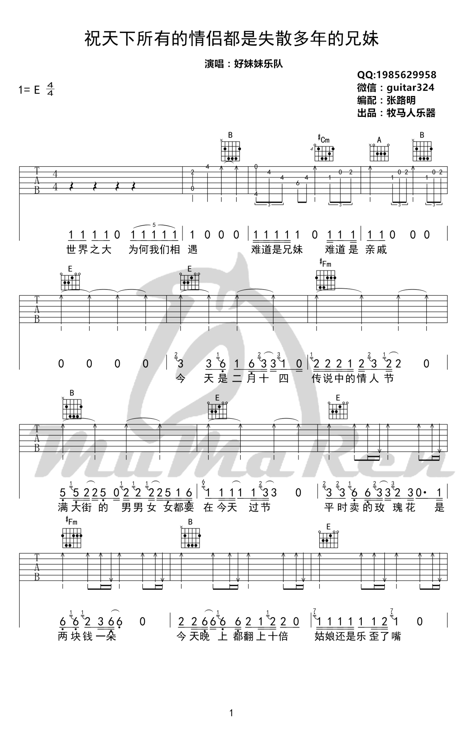 吉他弹唱E调来源:牧马人乐器--张路明1343 浏览2018-03-19 13:34发布图谱共5页
