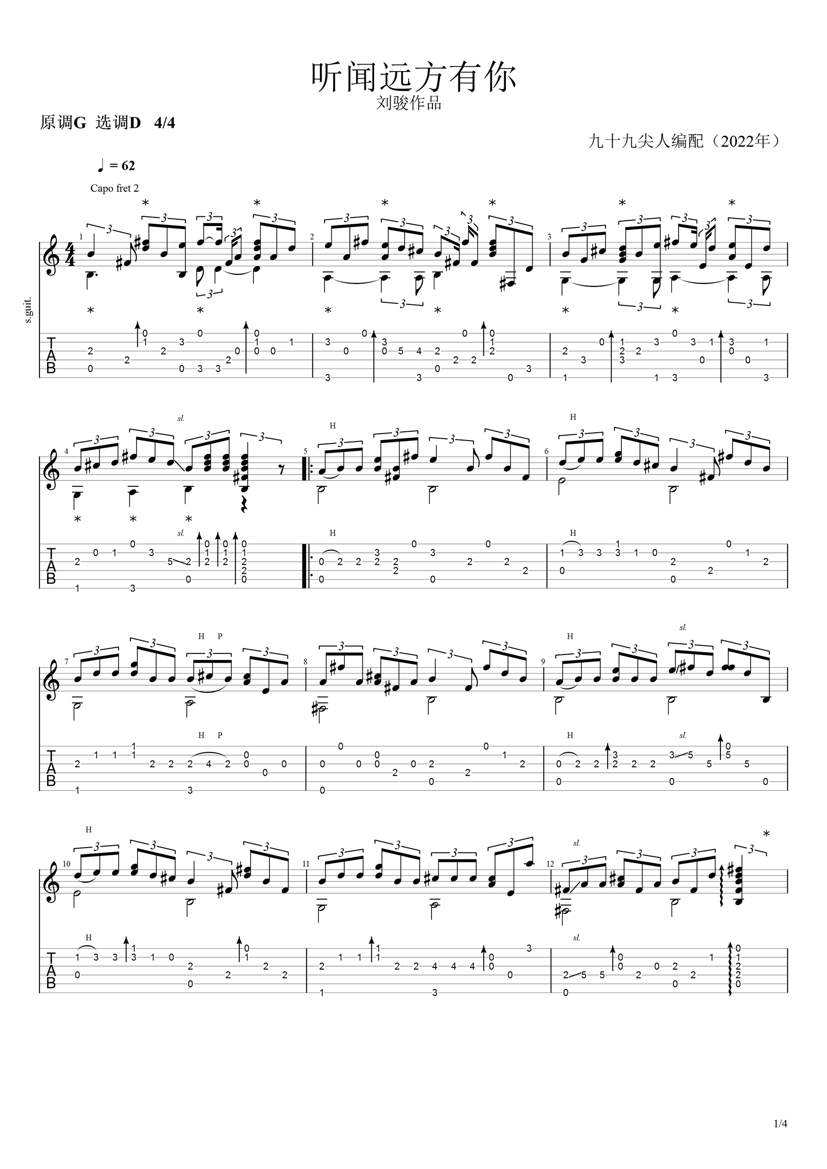 曲谱介绍: 吉他谱介绍:听闻远方有你指弹吉他谱,刘艺雯的一首指弹吉他曲目,这首曲子采用的是标准调弦,4/4拍的节奏,无需特殊调音。演奏时建议夹变调夹2品,也可根据个人实际情况选择。曲谱由琴谱网更新上传,共4张高清图片指弹吉他谱例,来源于@九十九尖人编配出品。情到深处才能写出这么感人的歌词、这么美妙的旋律、这么动听的歌曲!