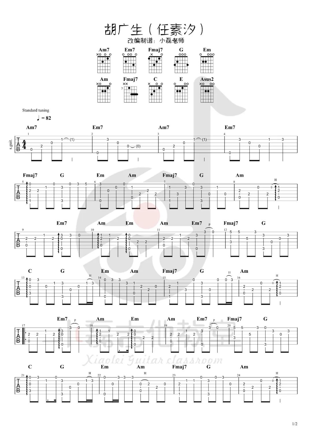 胡广生吉他谱 - 任素汐 - 吉他独奏谱