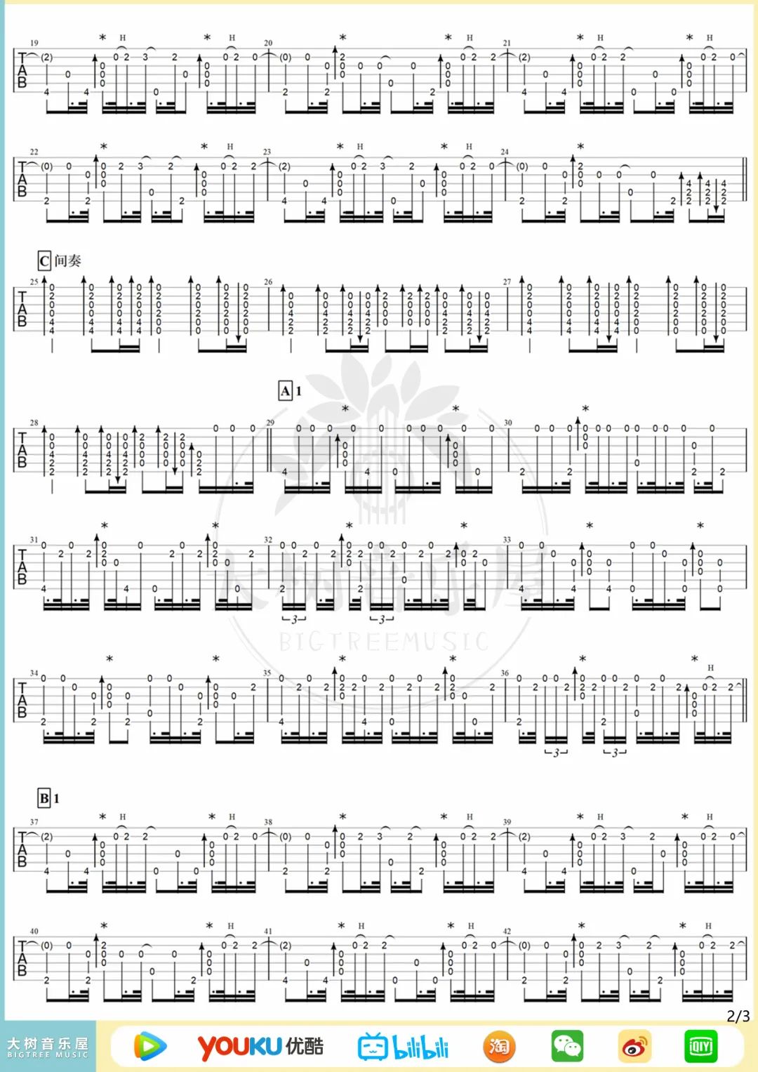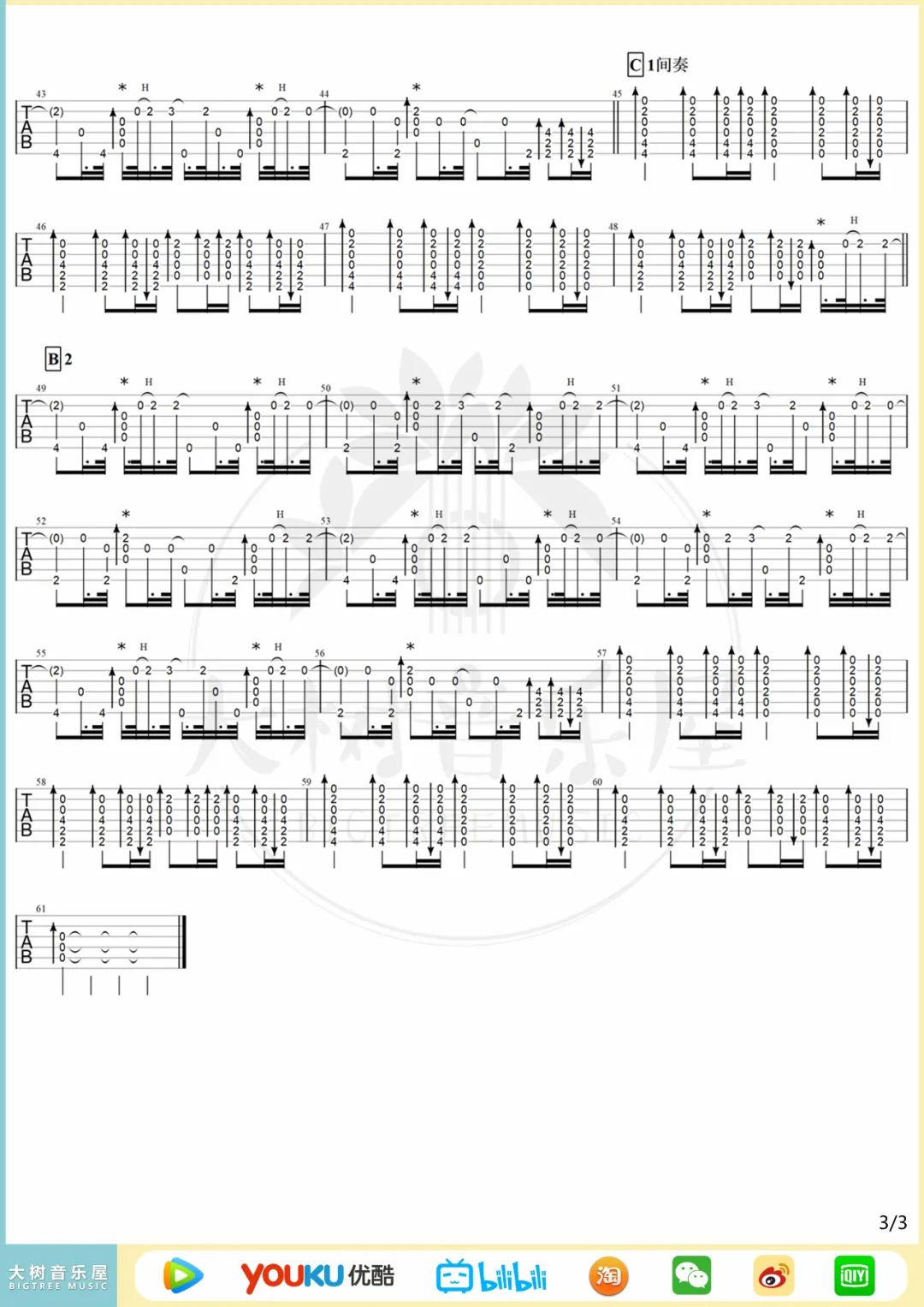 曲谱介绍: 吉他谱介绍:粉色海洋指弹吉他谱,周杰伦的一首指弹吉他曲目,这首曲子采用的是特殊调弦,4/4拍的节奏,练习之前6根琴弦需要调到对应的音,曲谱上有标注,注意调音过程中不要断弦。小技巧:琴弦振动过程中不要调音,用手制音之后再旋转弦钮,会大大降低断弦的几率。演奏时建议夹变调夹3品,也可根据个人实际情况选择。曲谱由琴谱网更新上传,共3张高清图片指弹吉他谱例,来源于@大树音乐屋编配出品。周杰伦的新歌《粉色海洋》指弹版,曲谱编配整体难度不大,这里用到了特殊调弦,分别降1256弦调至DAGC这几个音即可。 粉色海洋指弹吉他教学