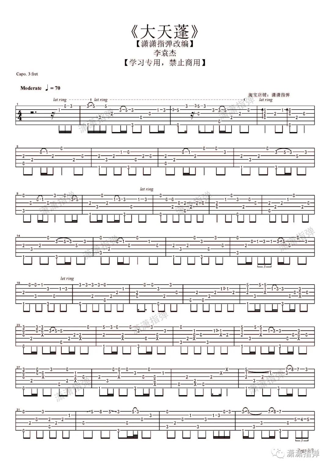 大天蓬吉他谱 - 李袁杰 - 吉他独奏谱