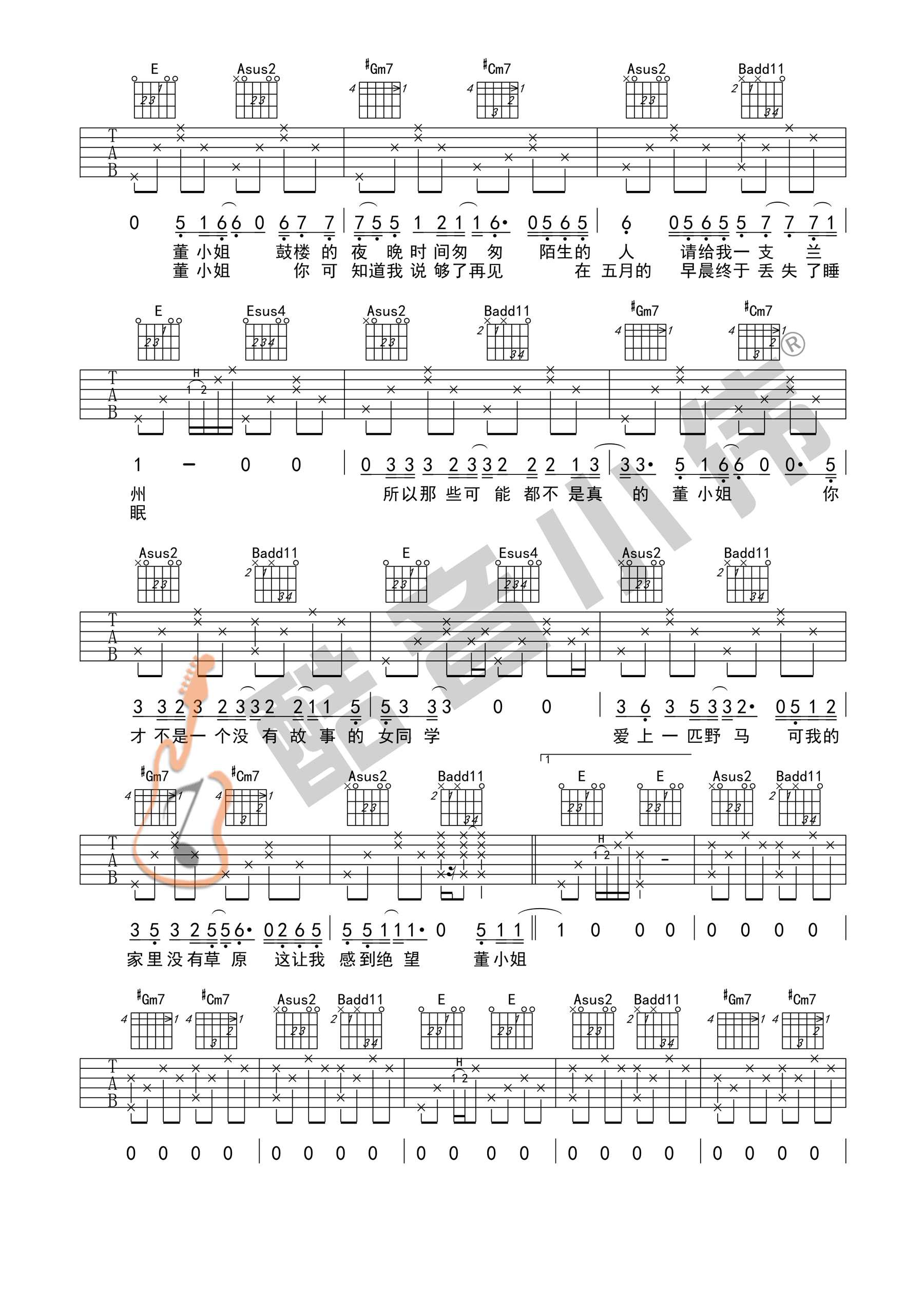 董小姐吉他谱 - 宋冬野 - E调吉他弹唱谱