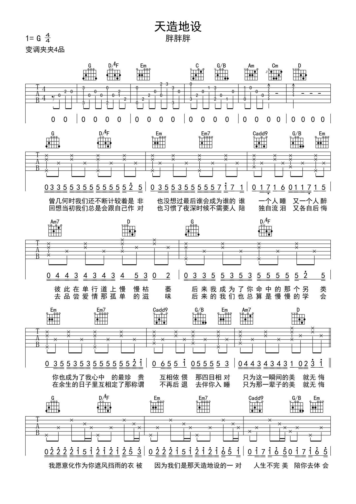 • 天造地设吉他谱 - 胖胖胖 - G调吉他弹唱谱第1张
