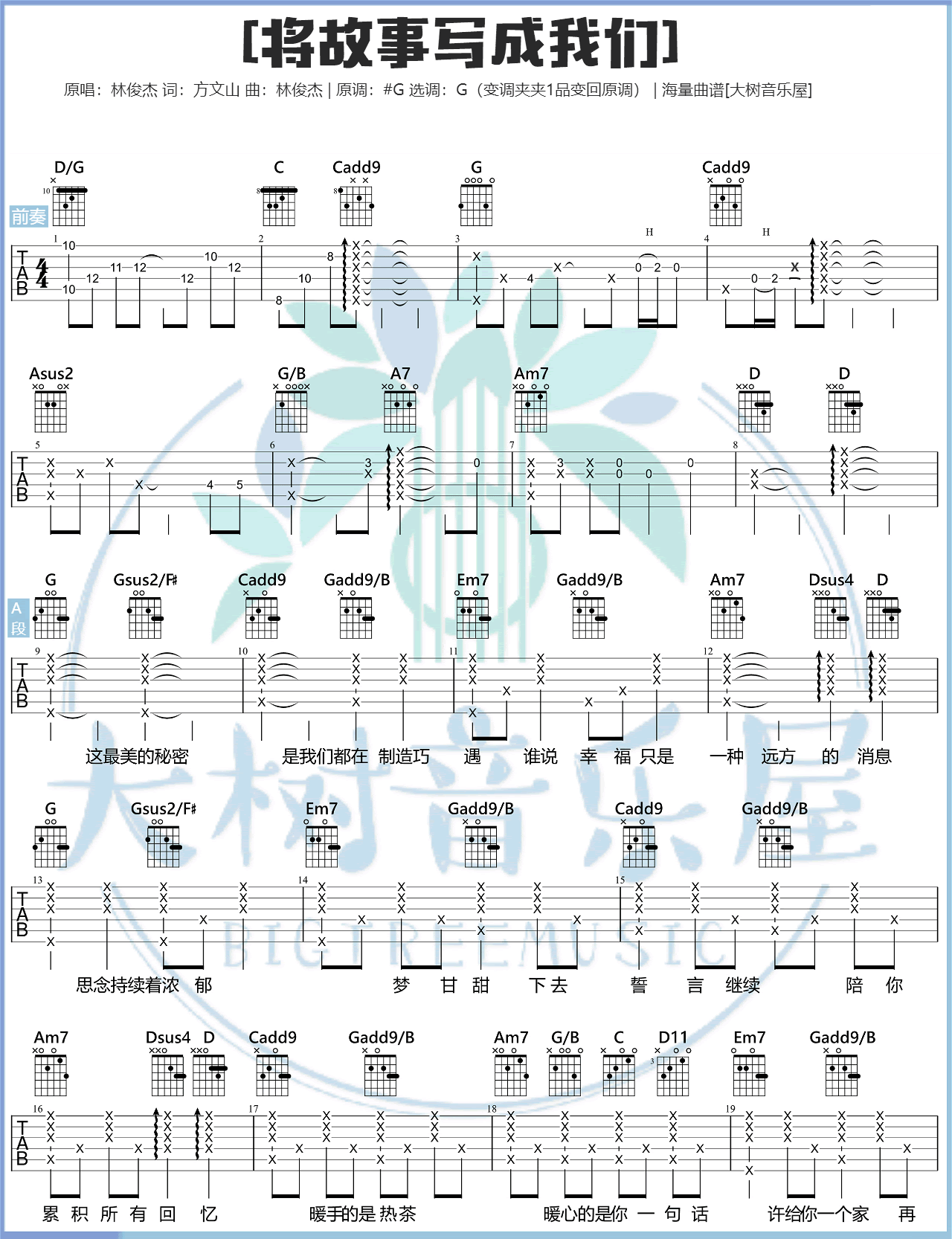 将故事写成我们吉他谱 - 林俊杰 - G调吉他弹唱谱