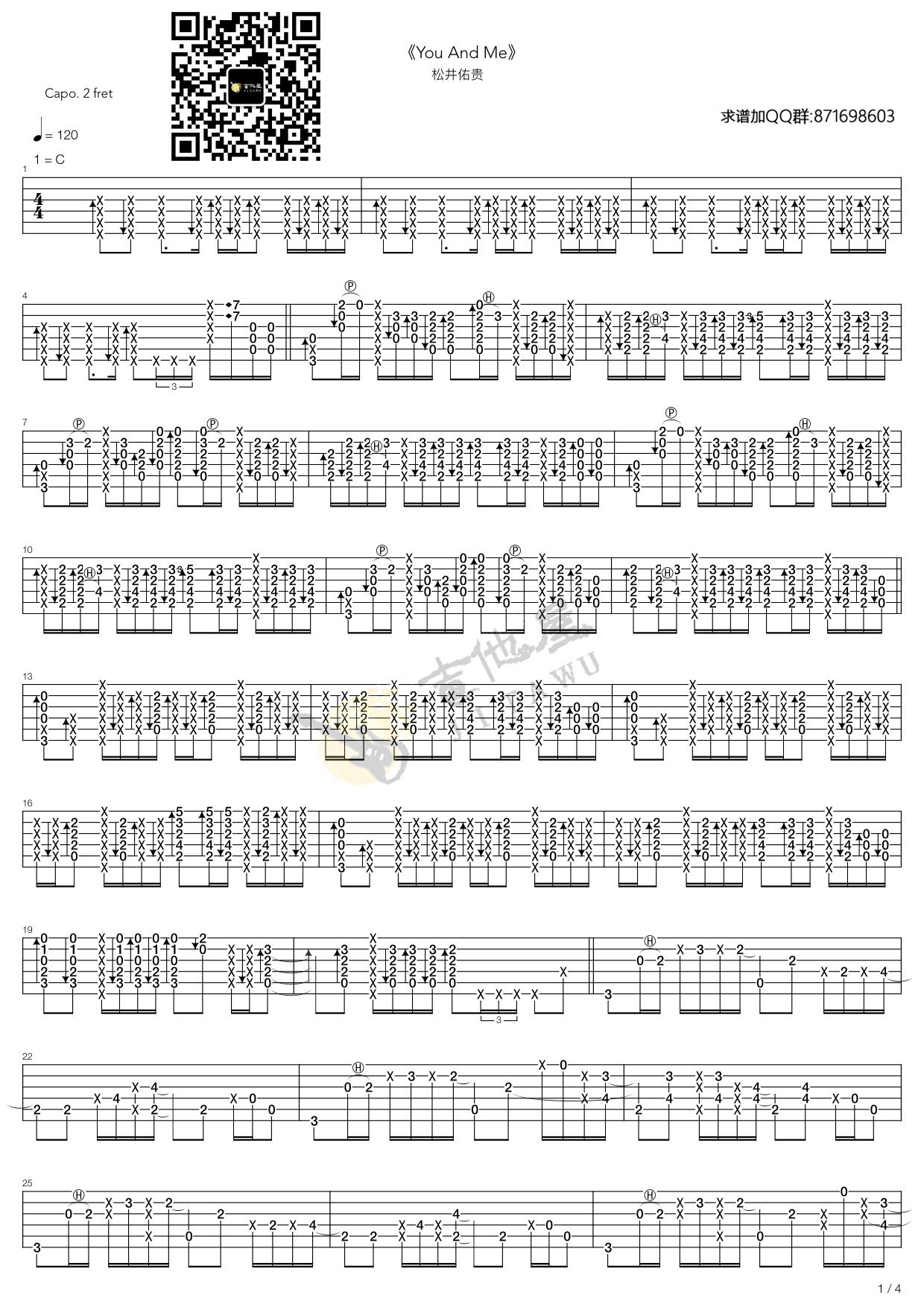 You and me吉他谱 - You - 吉他独奏谱 - 原版