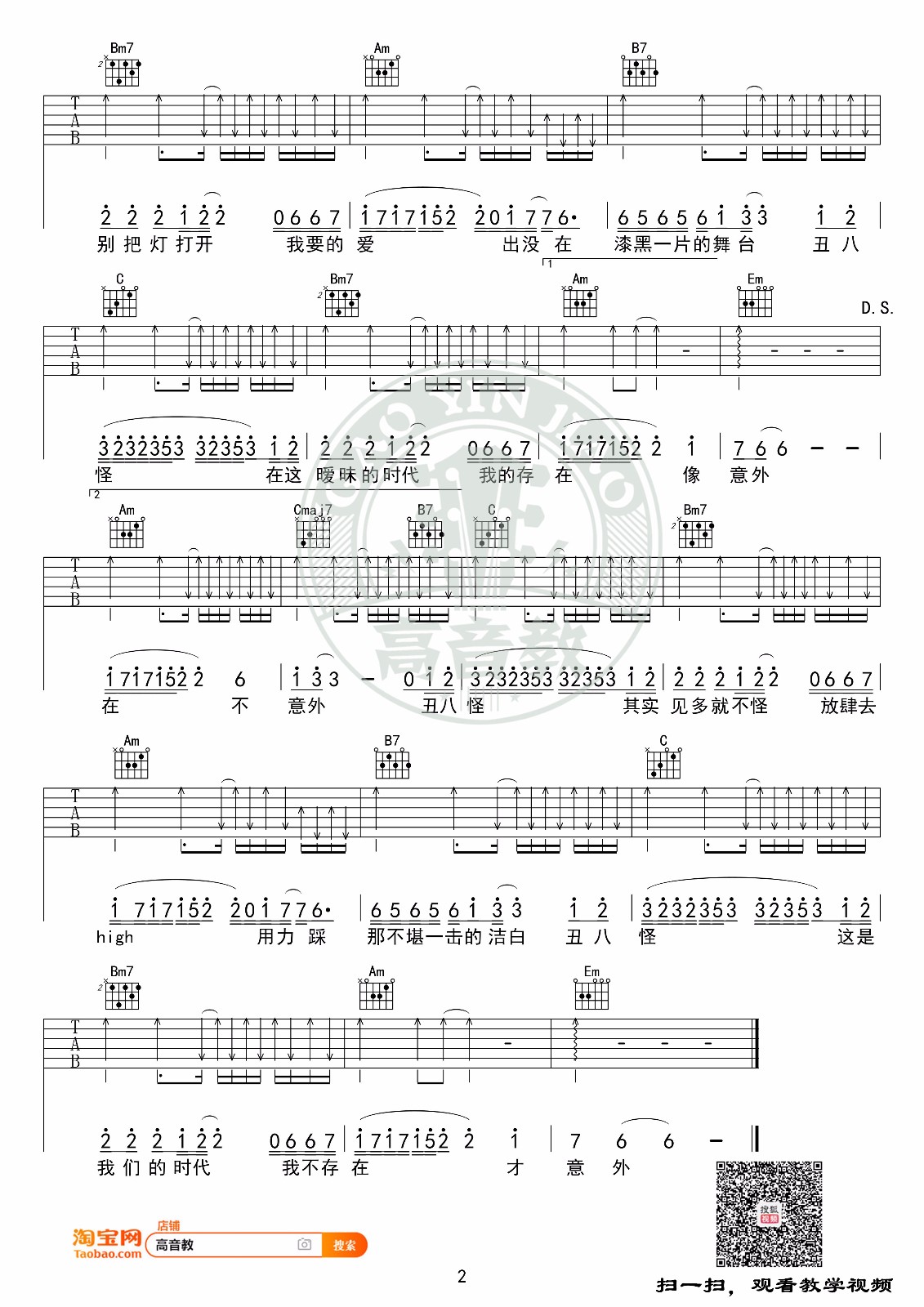 当前位置:琴谱网>吉他弹唱>丑八怪