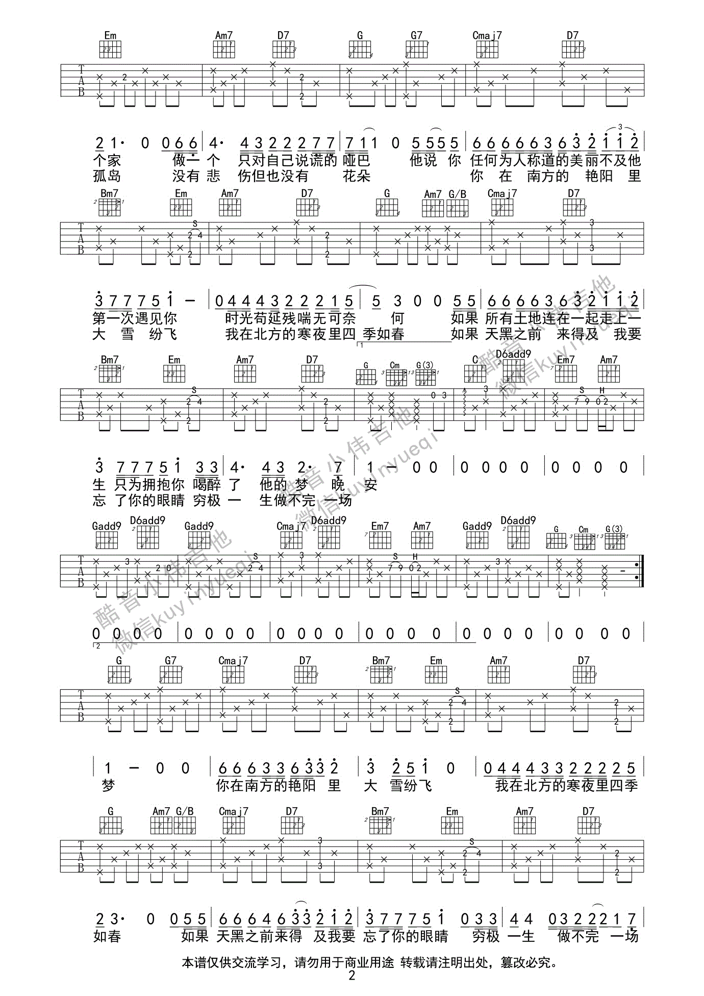 当前位置:琴谱网>吉他弹唱>南山南