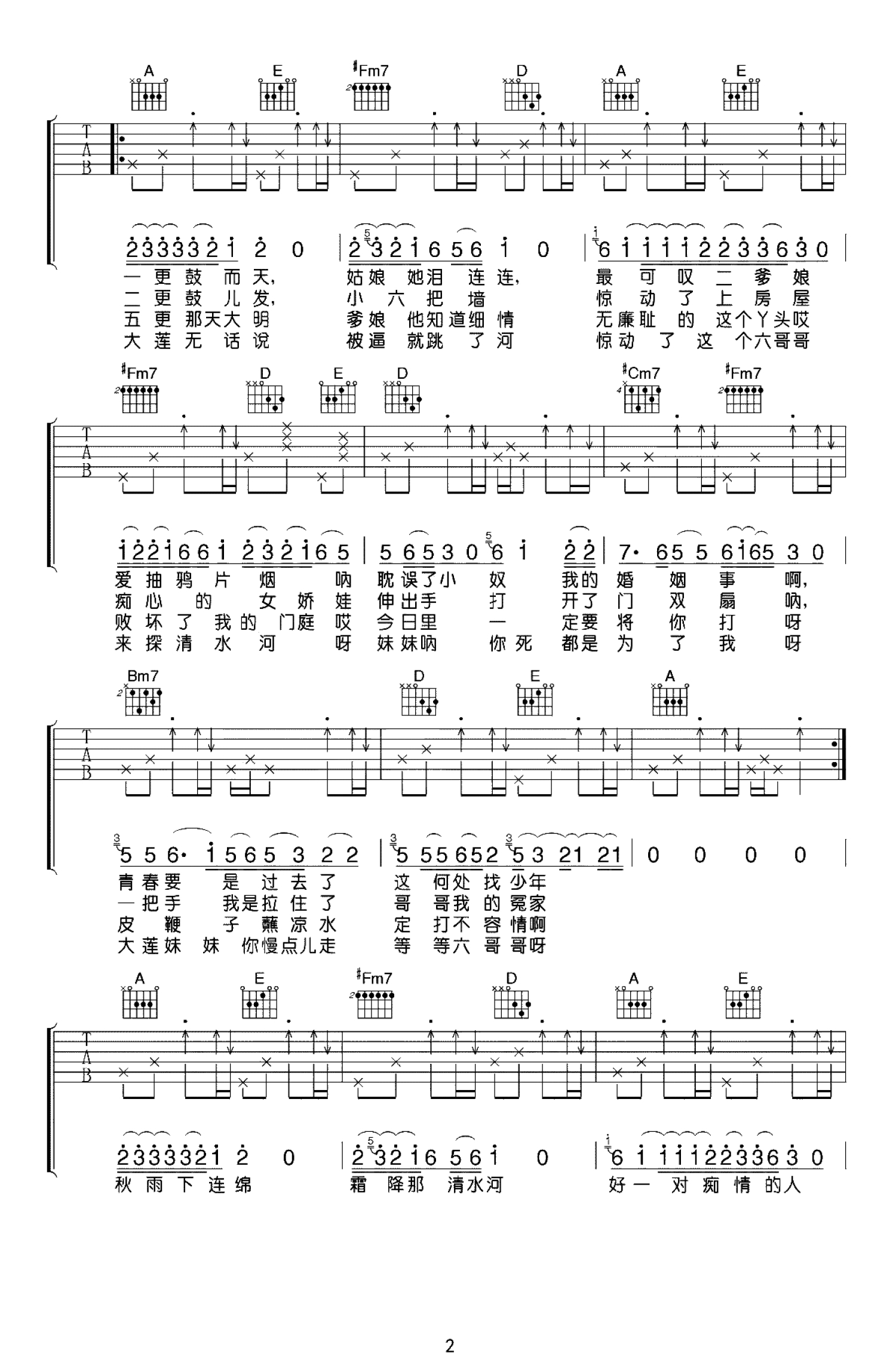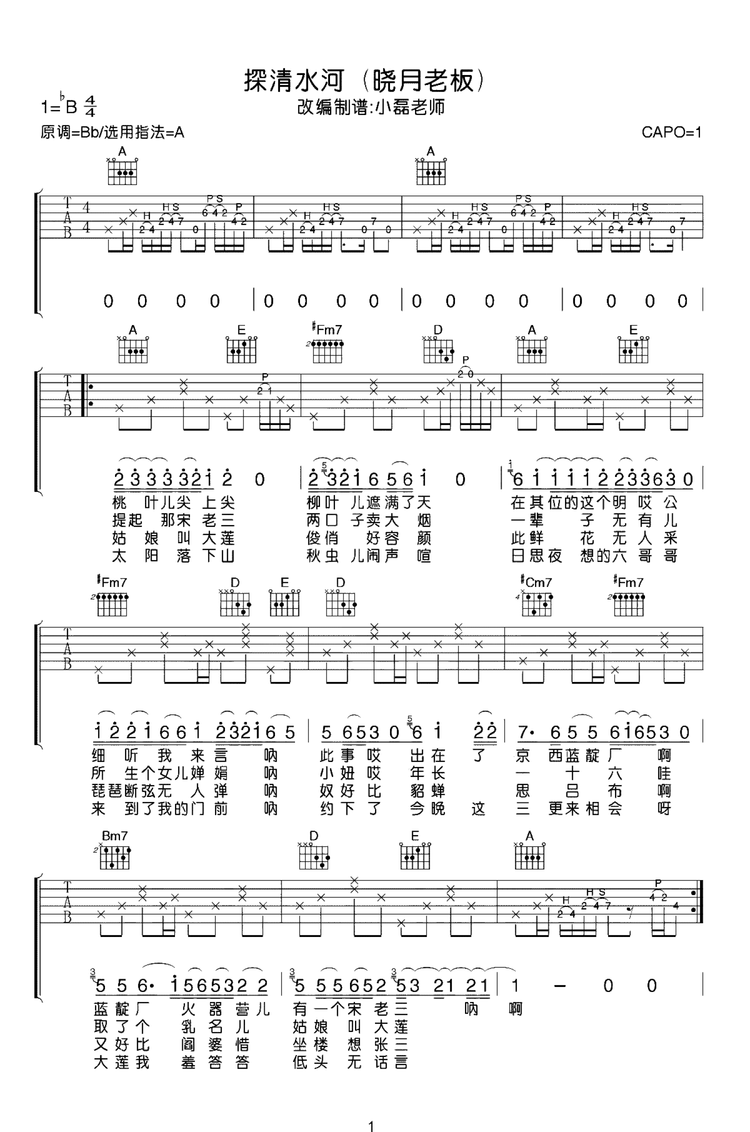 探清水河吉他谱 - 晓月老板 - A调吉他弹唱谱