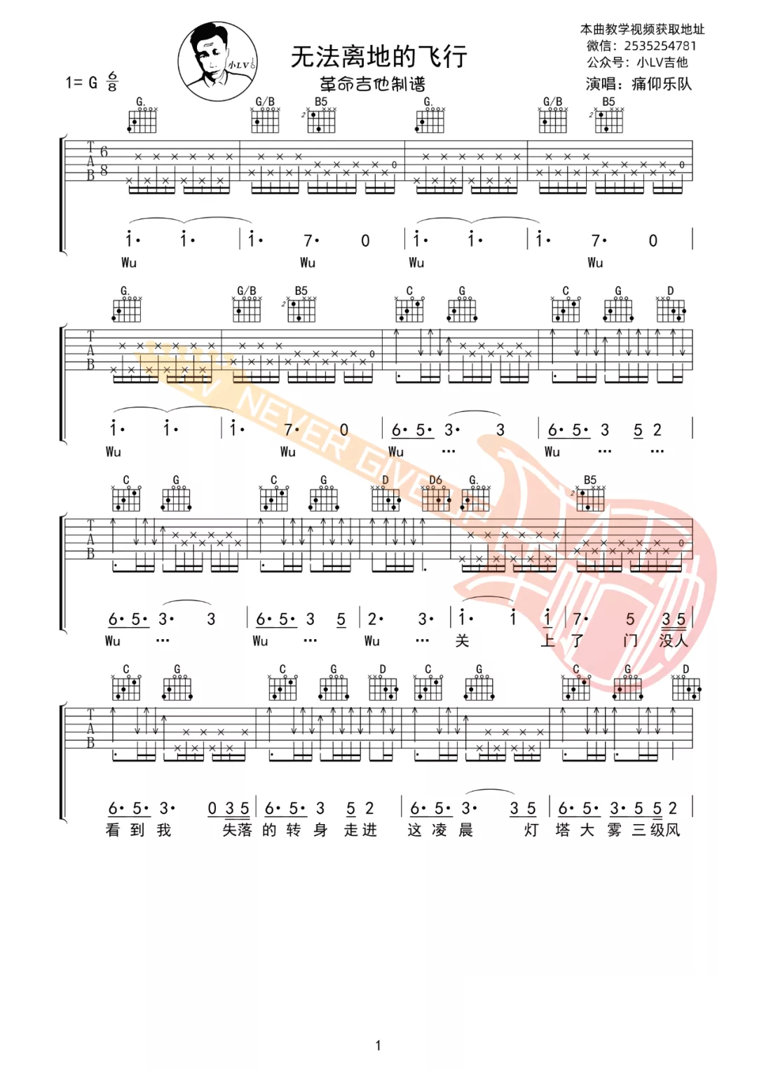 曲谱介绍: 吉他谱介绍:无法离地的飞行吉他谱,痛仰乐队演唱的一首歌曲,6/8拍的节奏,这首歌曲的原调为G调,这里曲谱采用了G调指法进行编配,演唱时可不夹变调夹,曲谱由琴谱网更新上传,共5张高清图片弹唱吉他谱例,来源于@革命吉他编配出品。一首来自痛仰乐队的歌曲,是韩寒电影《四海》中的插曲,这也是痛仰与韩寒的第一次合作,非常不错的一首歌曲。 无法离地的飞行吉他弹唱教学