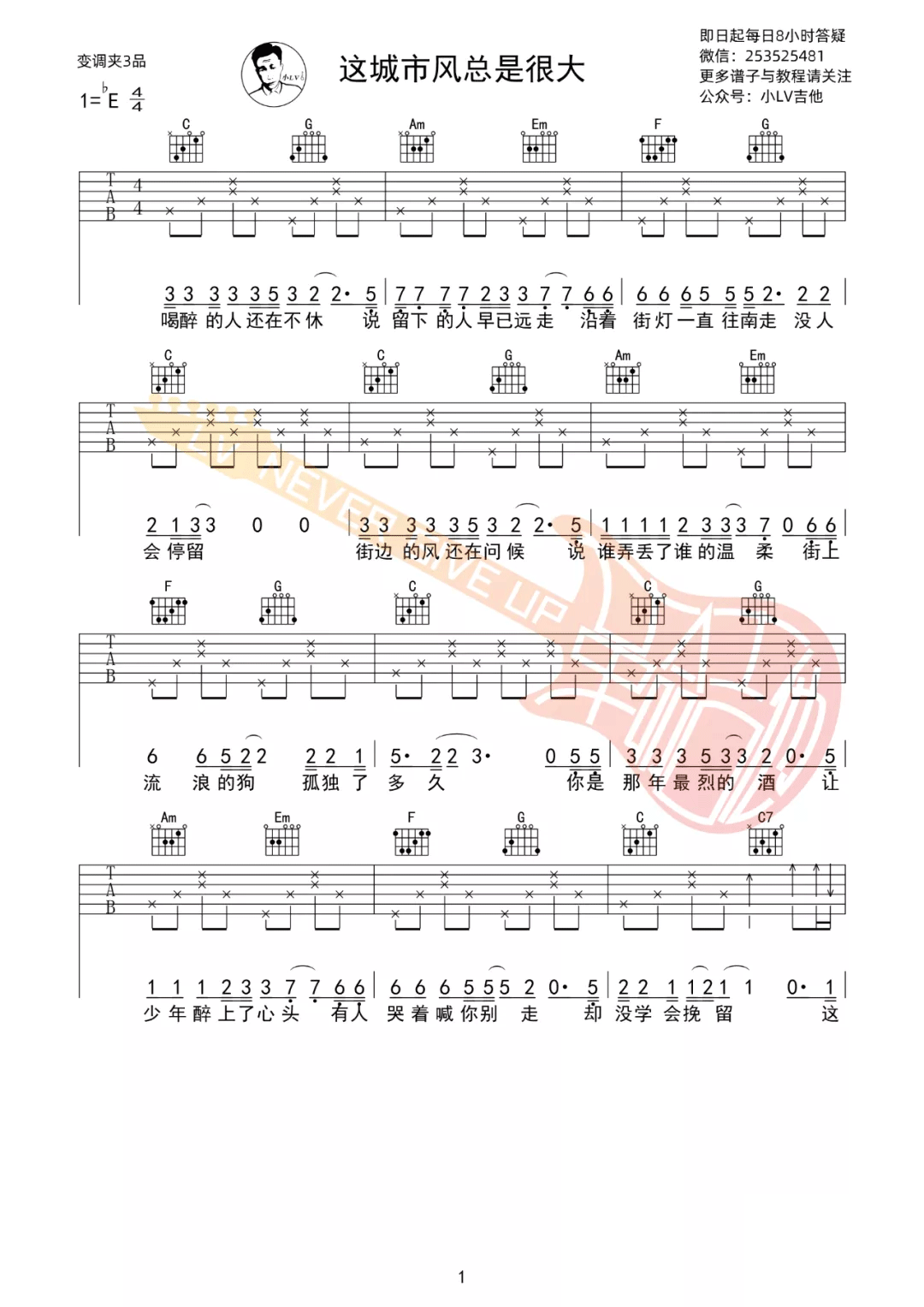 琴谱网为您精心推荐 这城市风总是很大 高清图谱