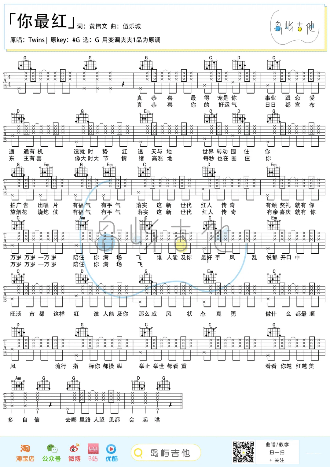 你最红吉他谱 - Twins - G调吉他弹唱谱