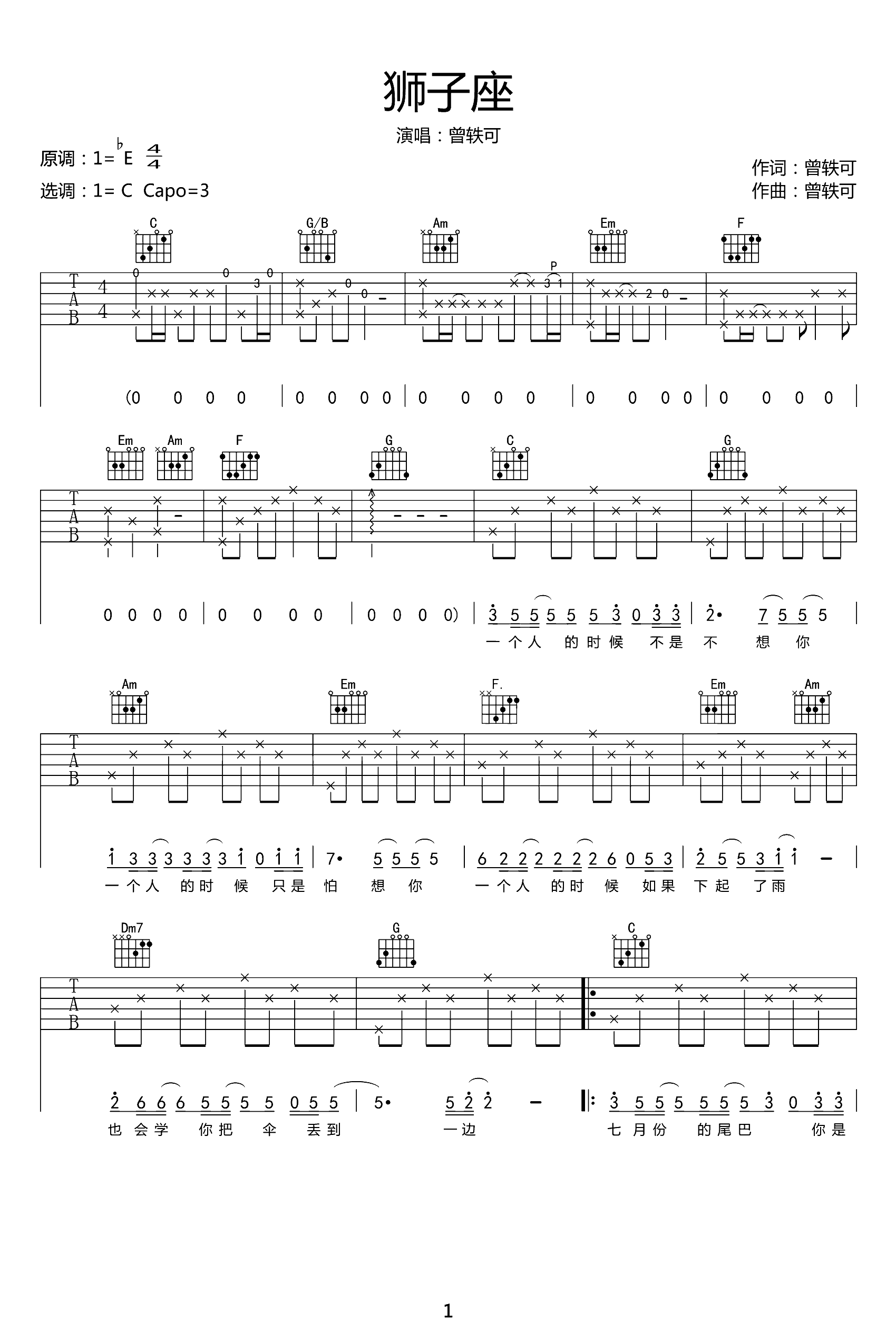 狮子座吉他谱 - 曾轶可 - C调吉他弹唱谱