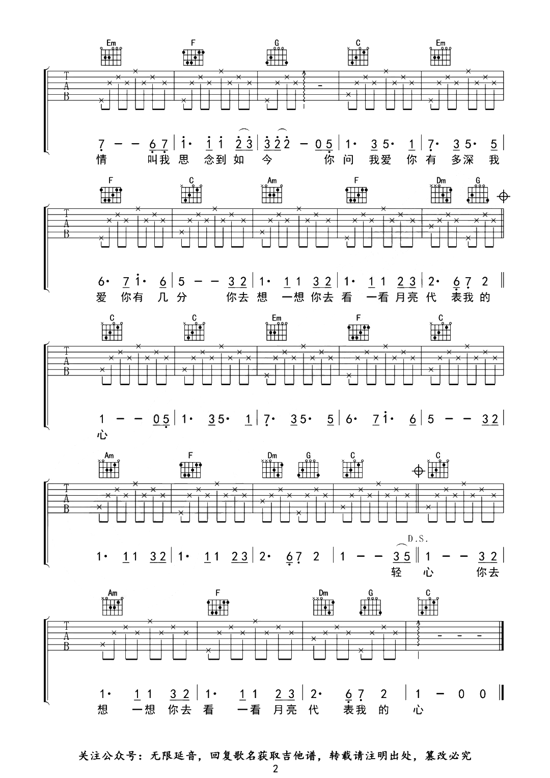月亮代表我的心吉他谱 - 邓丽君 - C调吉他弹唱谱